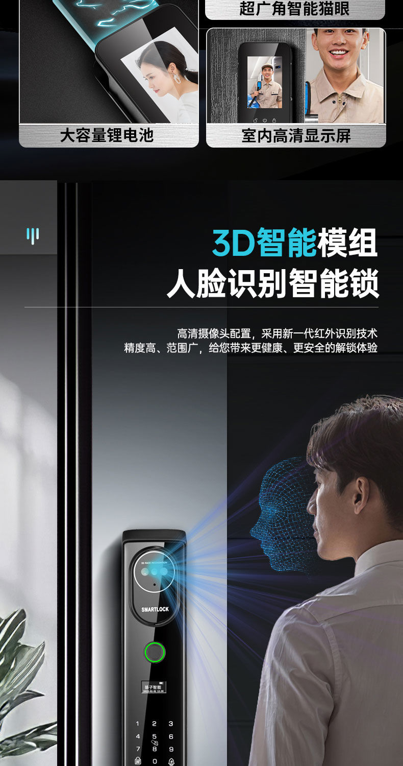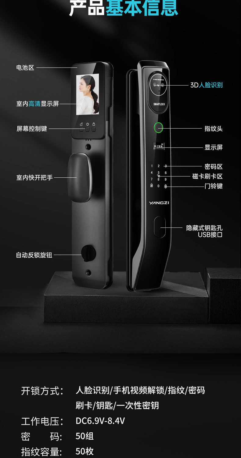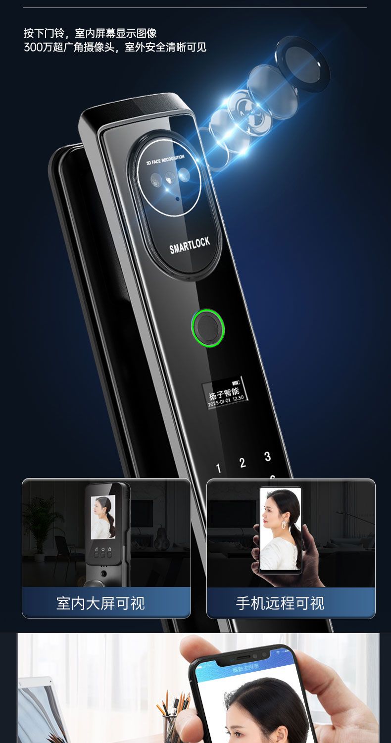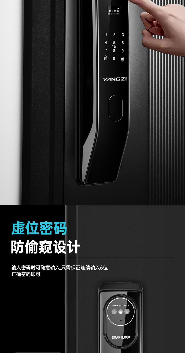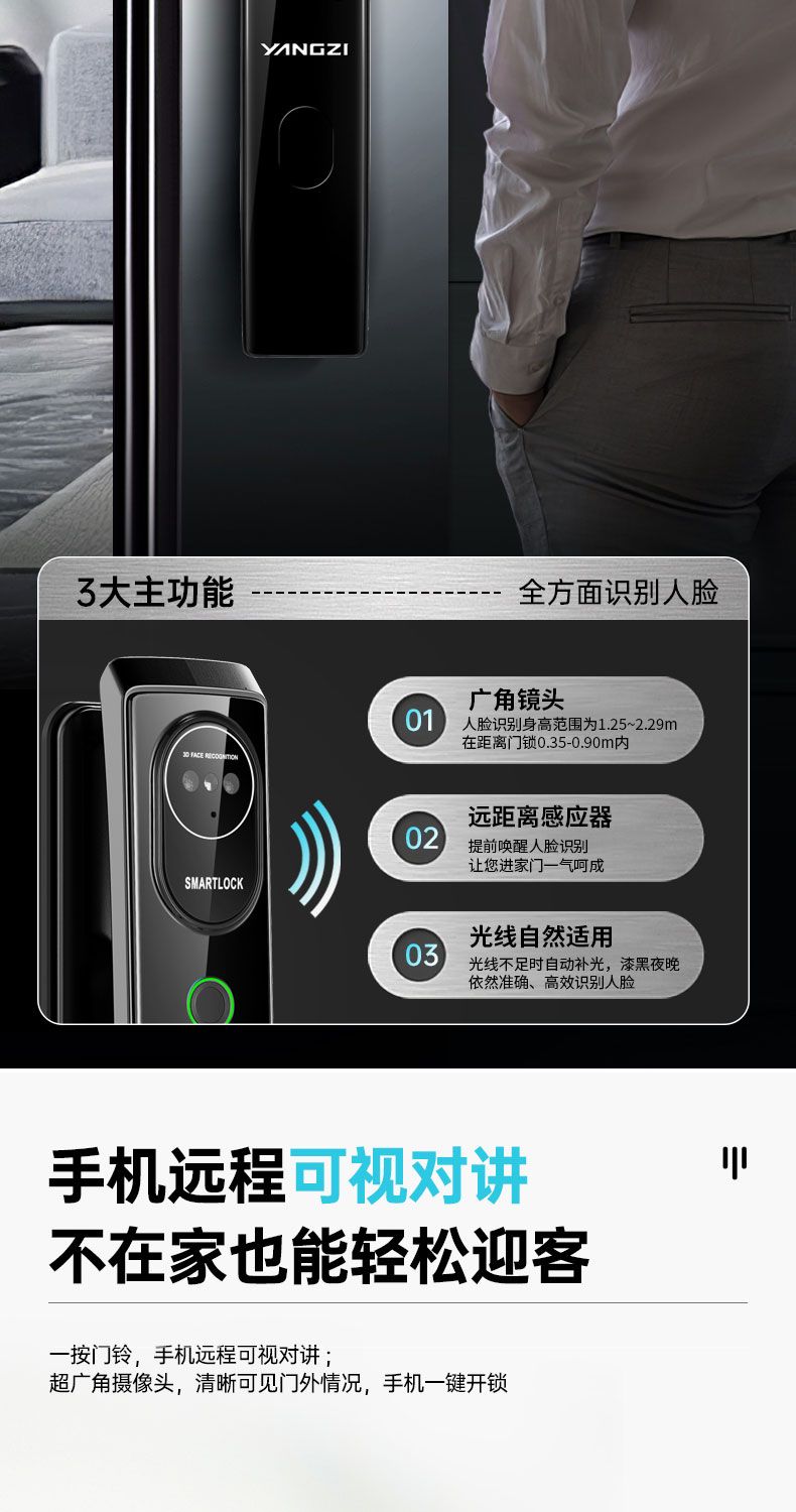 【台灣公司 超低價】揚子集團3D人臉識別全自動貓眼智能指紋鎖家用防盜門鎖電子智能鎖 5