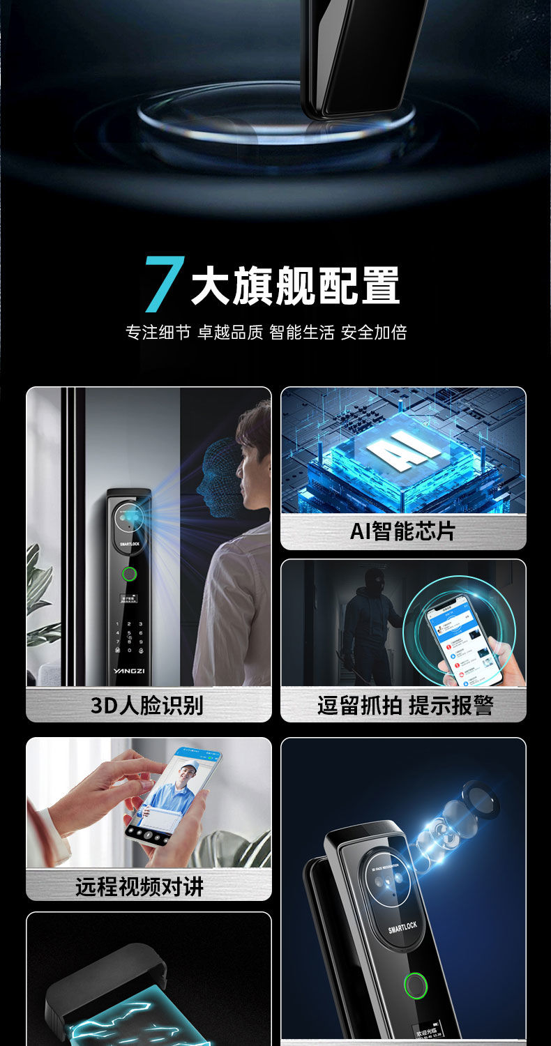 【台灣公司 超低價】揚子集團3D人臉識別全自動貓眼智能指紋鎖家用防盜門鎖電子智能鎖 7