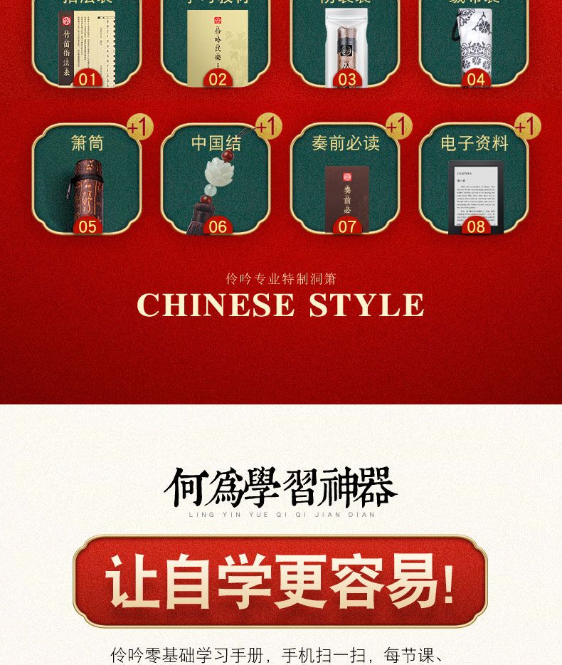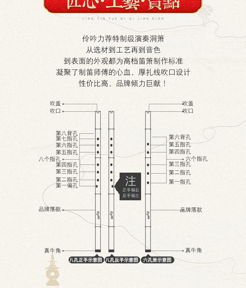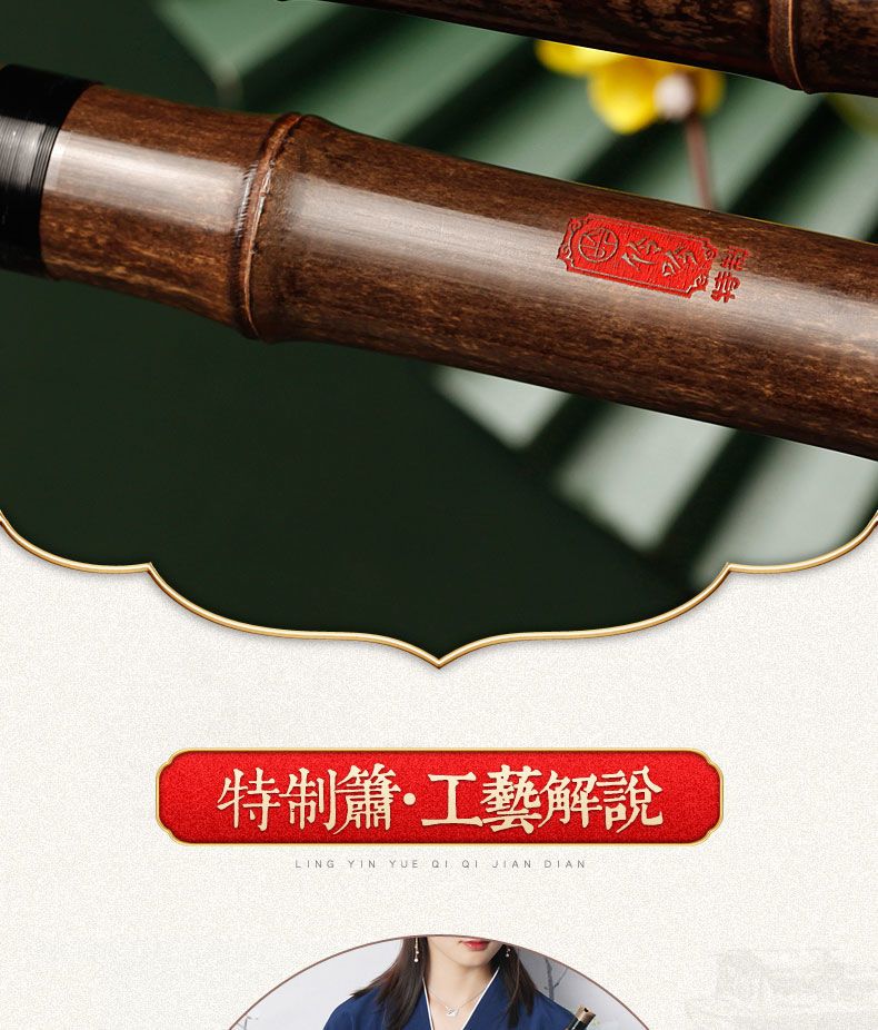 【台灣公司 超低價】伶吟民族樂器專業演奏級一節紫竹洞簫G成人入門六八孔素蕭包郵F調 6