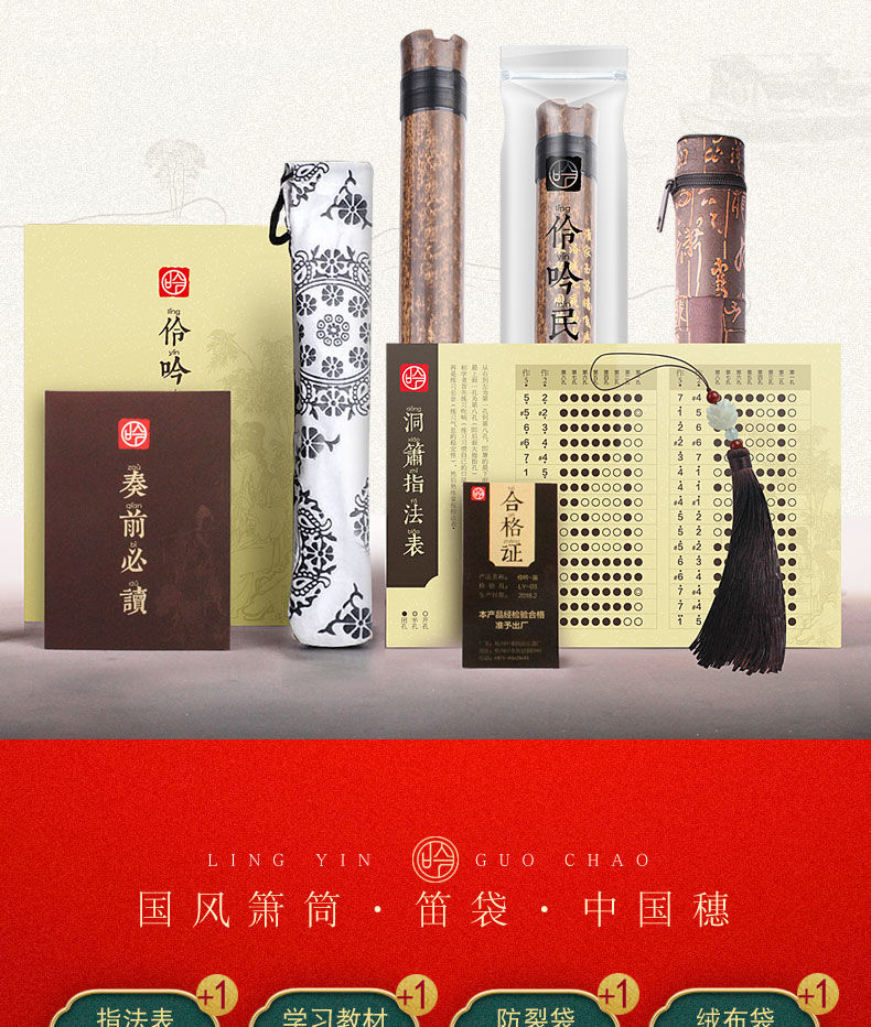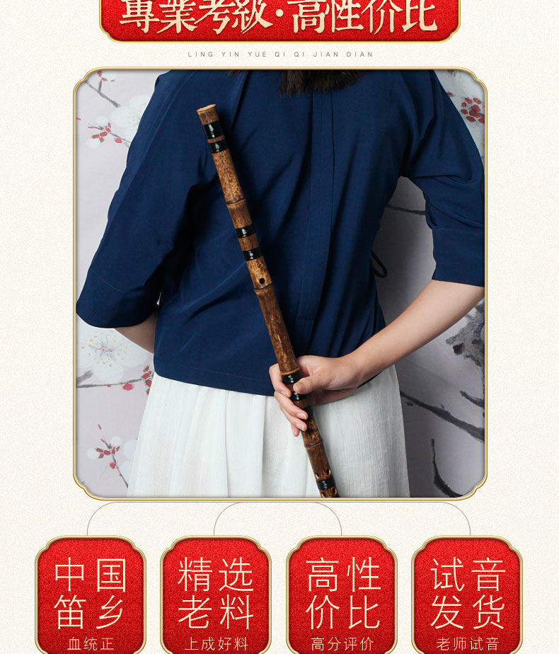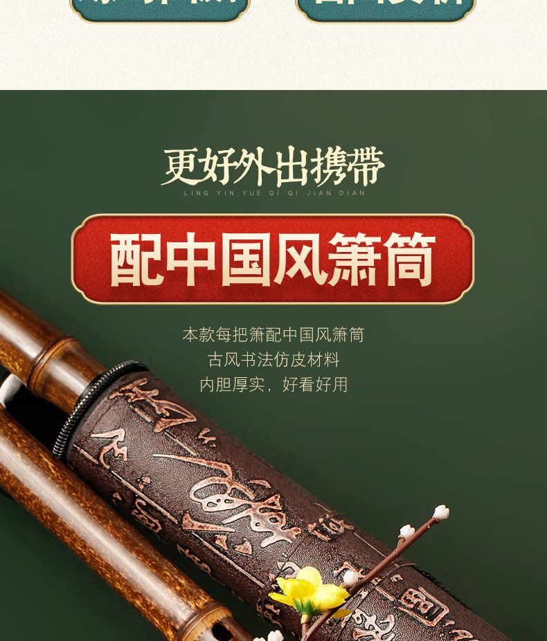 【台灣公司 超低價】伶吟民族樂器專業演奏級一節紫竹洞簫G成人入門六八孔素蕭包郵F調 4