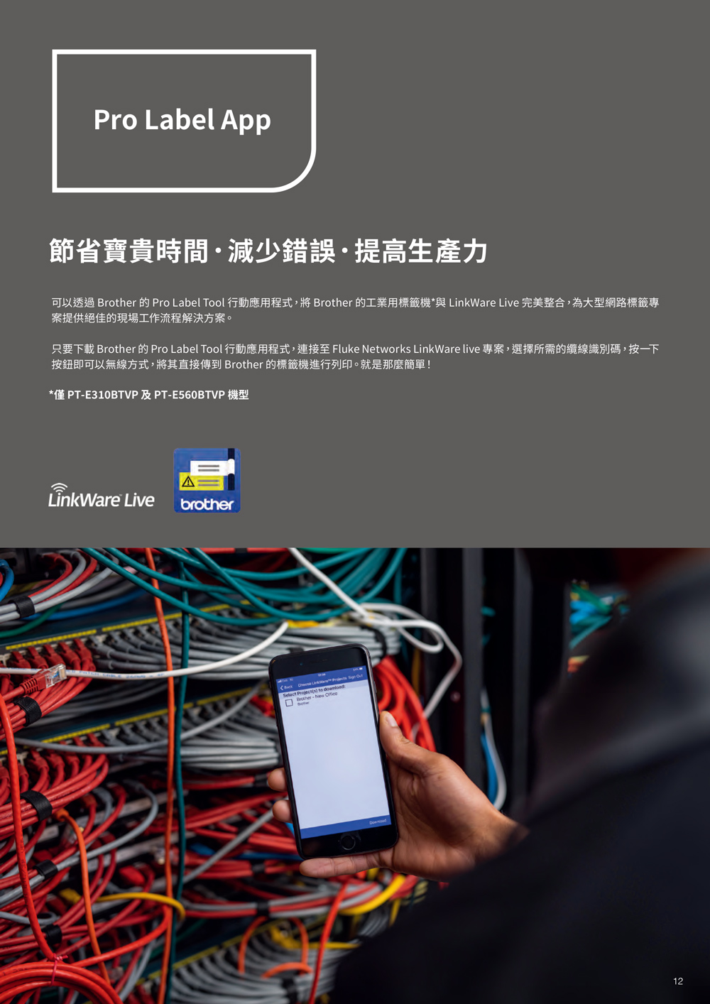 專為電工與網路專業人員推出的工業用手持標籤機,透過內建操作簡易的標籤功能、電腦軟體或藍牙連結至手機、平板電腦,使用brother的APP皆可製作耐用的標籤。