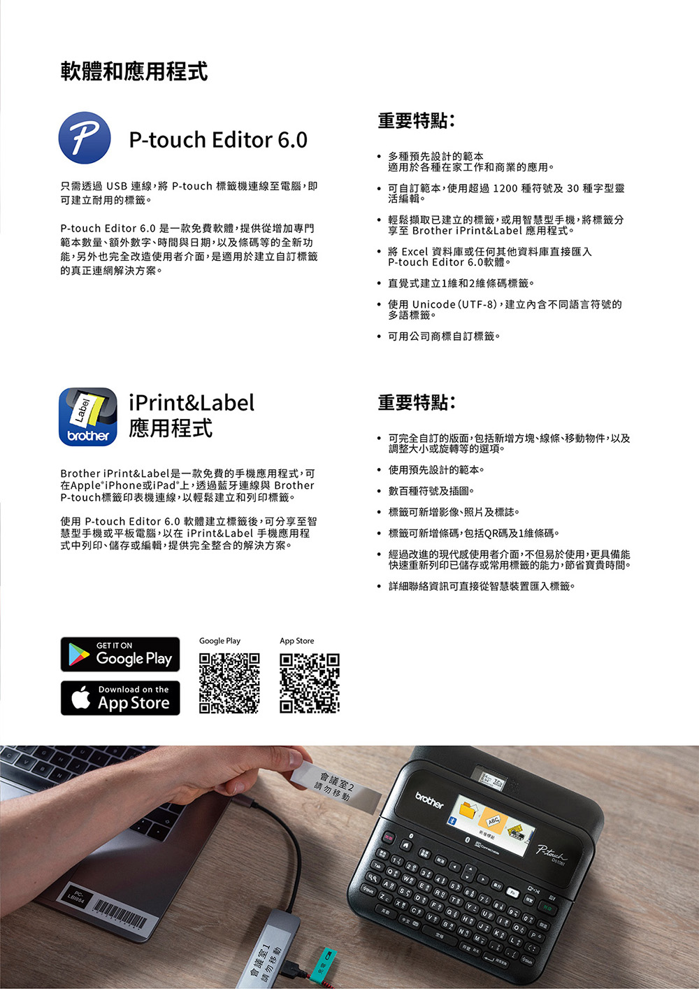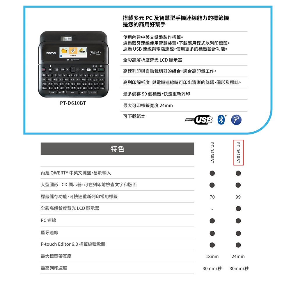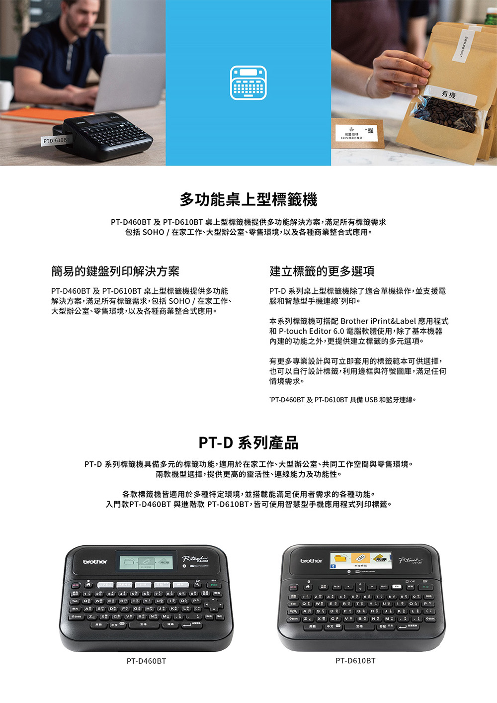 【brother】PT-D610BT高速彩色液晶螢幕多功能桌上/手持型標籤機(PT-D610BT)