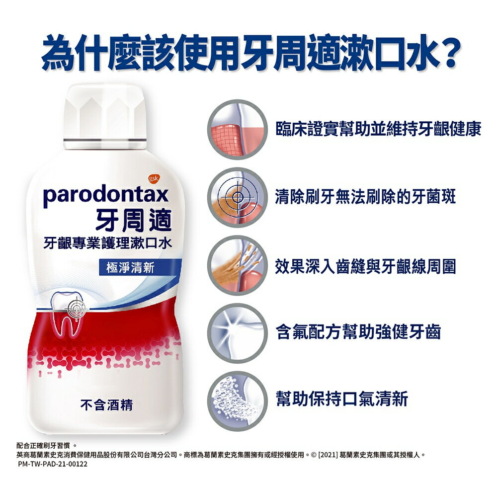 💖穿透式除菌.英國進口 💖不含酒精 口味溫和 💖臨床證實保護牙齦健康 *超取請勿超過6瓶,謝謝! 商品名稱:牙周適 牙齦專業護理漱口水 商品規格:500ml / 瓶 商品成分:請參考圖片所示 商品產地:英國 食用方法:每日兩次,每次用10毫升漱口水漱口1分鐘後吐出。 保存方式:使用後請關緊瓶蓋,放置陰涼、乾燥處,避免潮濕、陽光或高溫直射。 保存期限:24個月 【注意事項】 ⭐️若產生刺激現象,請停止使用產品。 ⭐️請放在兒童不能觸及的地方,在未經牙醫或醫護人員指示的情況下,不適合6歲以下兒童使用。 ⭐️敏感性牙齒可能代表有潛在的牙齒問題需及時照護,如問題持續或惡化,請諮詢牙醫意見。 ⭐️如產生敏感反應,請停止使用產品。請勿就瓶口使用。 ⭐️請勿於瓶口直接飲用。開瓶時若瓶口護膜缺陷或不整,請勿使用。 ⭐️本賣場出貨皆為新品,「物流配送過程中難免受到擠壓,」若不能接受者,歡迎到實體門市選購。 ⭐️拆封包裹時請錄影存證,如發現異常,請勿自行拆封商品包裝並直接通知我們,我們會與原廠替您做後續處理。 ⭐️所有商品不開放試用,一經開封將影響您退貨權益。 ⭐️拆封包裹若有發現異常,請即時拍照存證並通知我們。 ⭐️下標視同同意以上購物前須知。 💖 如有任何問題歡迎線上留言詢問。