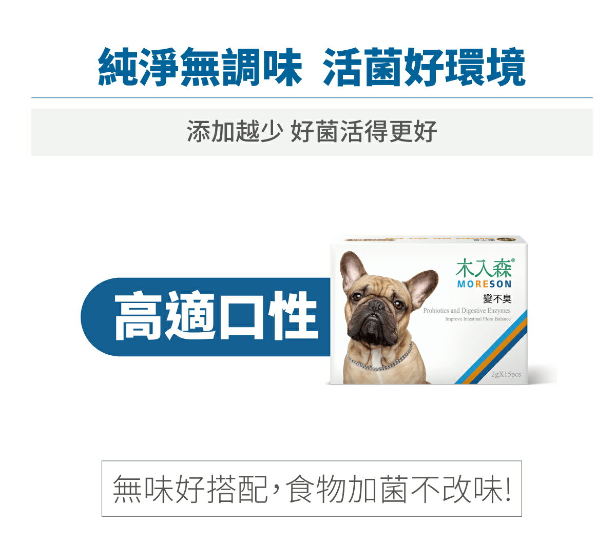⭐️為什麼狗狗要吃益生菌? *常用吞的,吃太快 *飼料中不能消化成分太多(澱粉、膠類等) *只吃肉纖維,酵素不充足 *年紀增長,消化差 *年幼免疫尚未健全 *東舔西舔,吃壞肚子 木入森 犬寶變不臭,狗狗益生菌全新升級,黃金有益菌提升至 60 億,獨家使用 FA2SPC 犬用專科益生菌,皆選擇犬腸優勢菌,精準模擬狗狗健康腸型態,搭配好菌ABC鐵三角,針對狗狗飲食幫助消化,使排便穩定正常。適合軟便、乾便、消化吸收差、體虛的狗狗。 🎈豐富 60 億有益菌,符合狗狗需求 🎈維持腸道免疫力 🎈幫助消化吸收 🎈減少排便異味 商品名稱:木入森 犬寶變不臭 狗狗益生菌 主要成分:可溶性膳食纖維(玉米來源)、菊苣纖維、果寡糖、FA2SPC犬 專用益生菌(嗜酸乳桿菌、動物雙歧桿菌、發酵乳桿菌、植 物乳桿菌、乾酪乳桿菌、孢子型乳酸菌)、n-zimes®綜合消 化酵素(麥芽糊精、澱粉分解酵素、植酸酵素、葡萄糖澱粉 酵素、中性蛋白質分解酵素、鳳梨酵素、蛋白質分解酵素 4.5、轉化酵素、蛋白質分解酵素、半纖維素分解酵素、果 膠酵素、α-半乳糖苷酶、蛋白質分解酵素AM、脂肪分解酵 素、胜肽分解酵素、乳糖分解酵素、蛋白質分解酵素6、 澱粉酵素、纖維素分解酵素AN)。 餵食方式:可混合飼料食用或溶於水中飲用。狗狗小於 10kg:1包 / 日。狗狗大於 10kg:2包 / 日,分兩餐餵食。 商品產地:台灣 商品規格:30包/盒,15包/盒 商品貨源:原廠公司貨 保存期限:三年 『注意事項』 ⭐️本賣場出貨皆為新品,「物流配送過程中難免受到擠壓,」若不能接受者,歡迎到實體門市選購。 ⭐️「拆封包裹時請錄影存證,如發現異常,請勿自行拆封商品包裝並直接通知我們,我們會與原廠替您做後續處理。」 ⭐️所有商品不開放試用,一經開封將影響您退貨權益。 ⭐️拆封包裹若有發現異常,請即時拍照存證並通知我們。 ⭐️下標視同同意以上購物前須知。