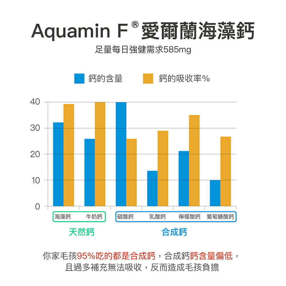 ⭐️木入森《犬寶D藻鈣》選用 Aquamin F 愛爾蘭海藻鈣,足量每日強健需求 585mg,來自有機紅藻,特殊多孔結構,吸收率極高,含量超越 2 瓶牛奶的牛奶鈣,是最佳的補鈣來源。可做為「幼犬老狗」、「懷孕哺乳犬」、吃「飼料罐罐」或「鮮食生食」狗狗缺鈣的重要營養補充。可作為「好發犬種」與「老年狗狗」的營養補充,以及「心臟不適」狗狗的護理營養。🎈- 顧及助鈣吸收營養🎈- 強健骨骼、牙齒發展🎈- 避免骨質鬆散脆弱🎈- 不同飲食皆可適用🎈- 根據 NRC (美國國家研究委員會) 建議攝取量補充🎈- 超越 AAFCO (美國飼料品管協會) 制定營養標準,更符合狗狗補鈣的營養需求 商品名稱:木入森 犬寶D藻鈣主要成分:海藻鈣、起司風味粉、麥芽糊精、海水抽取物(含鎂、磷)、酪蛋白磷酸胜肽(CPP)、納豆菌發酵物(含維生素K2)、維生素D3。商品產地:台灣商品規格:1克/包 30包/盒商品貨源:原廠公司貨保存期限:三年『注意事項』⭐️本賣場出貨皆為新品,「物流配送過程中難免受到擠壓,」若不能接受者,歡迎到實體門市選購。⭐️「拆封包裹時請錄影存證,如發現異常,請勿自行拆封商品包裝並直接通知我們,我們會與原廠替您做後續處理。」⭐️所有商品不開放試用,一經開封將影響您退貨權益。⭐️拆封包裹若有發現異常,請即時拍照存證並通知我們。⭐️下標視同同意以上購物前須知。