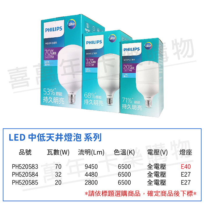 PHILIPS飛利浦 LED HID HB 20W E27 865 白光 全電壓 中低天井燈專用燈泡_PH520585