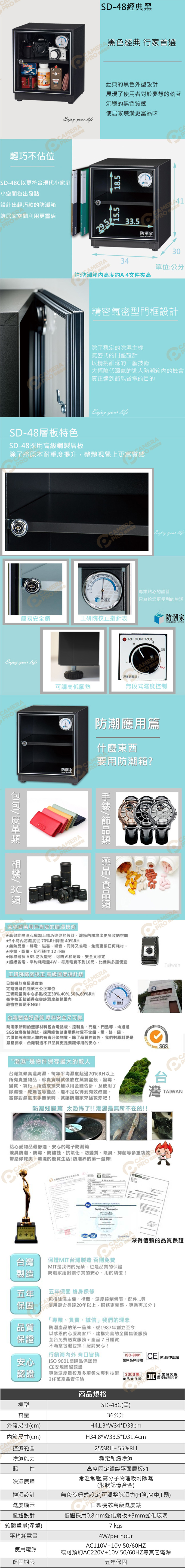 防潮家 SD-48 黑 電子防潮箱 36L