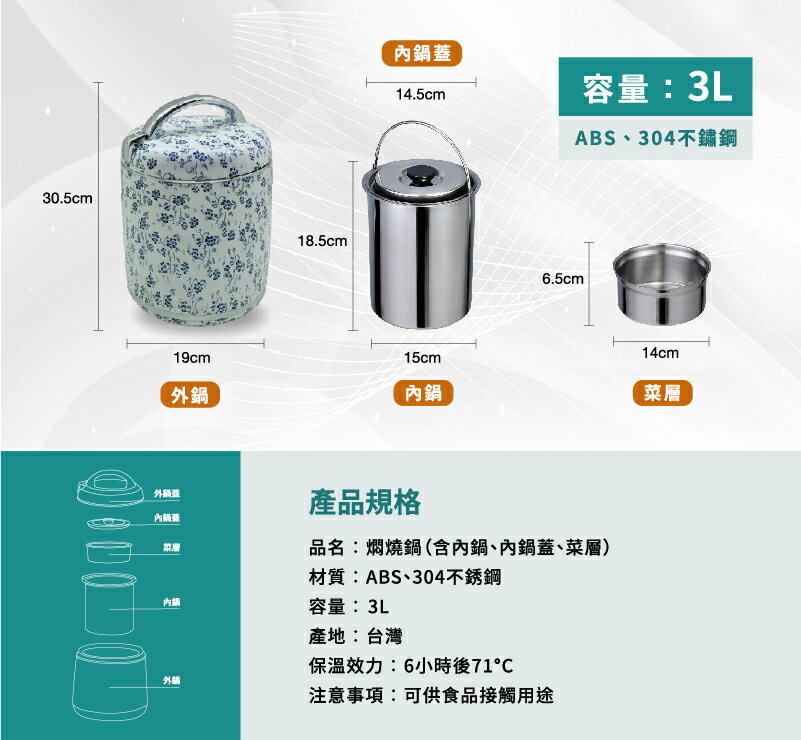 台灣製造 燜燒鍋 保溫 保冷 手提 不鏽鋼 免插電,省電省瓦斯,輕巧好攜帶