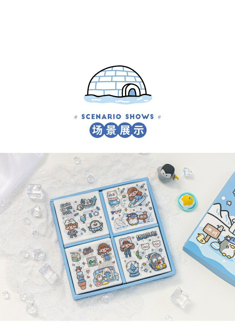超夯款可愛貼紙  1盒100張 軟軟極地世界系列 PET 防水貼紙 DIY 手帳貼紙 裝飾貼紙 ins風 手帳貼紙禮 4