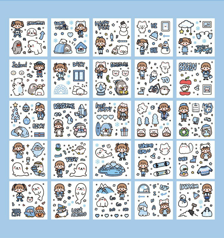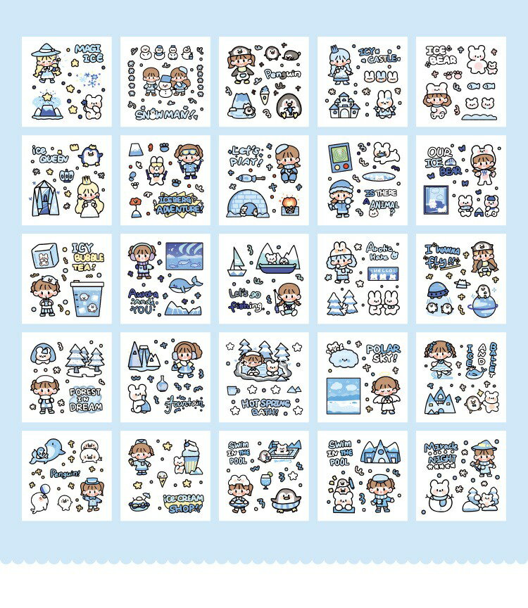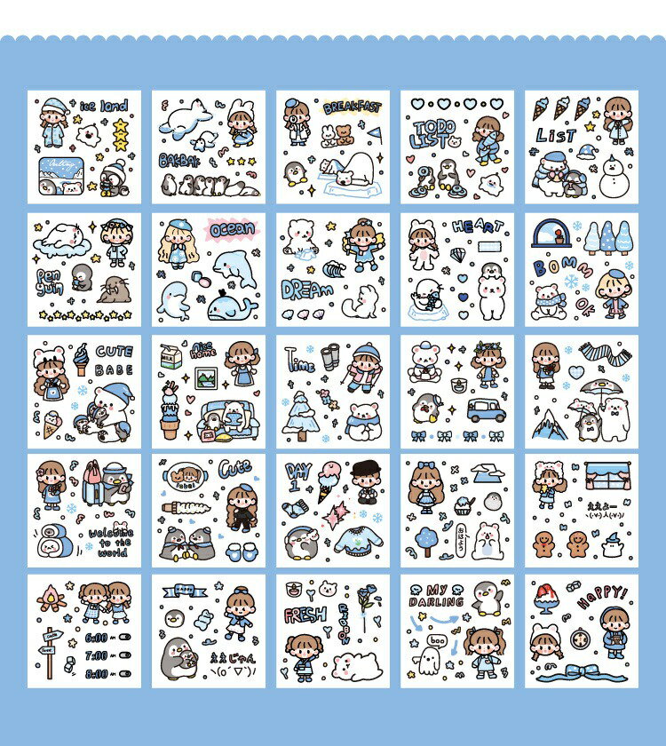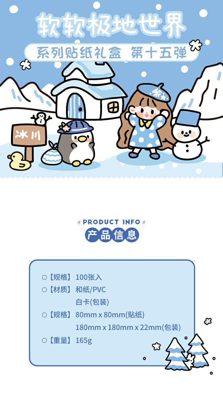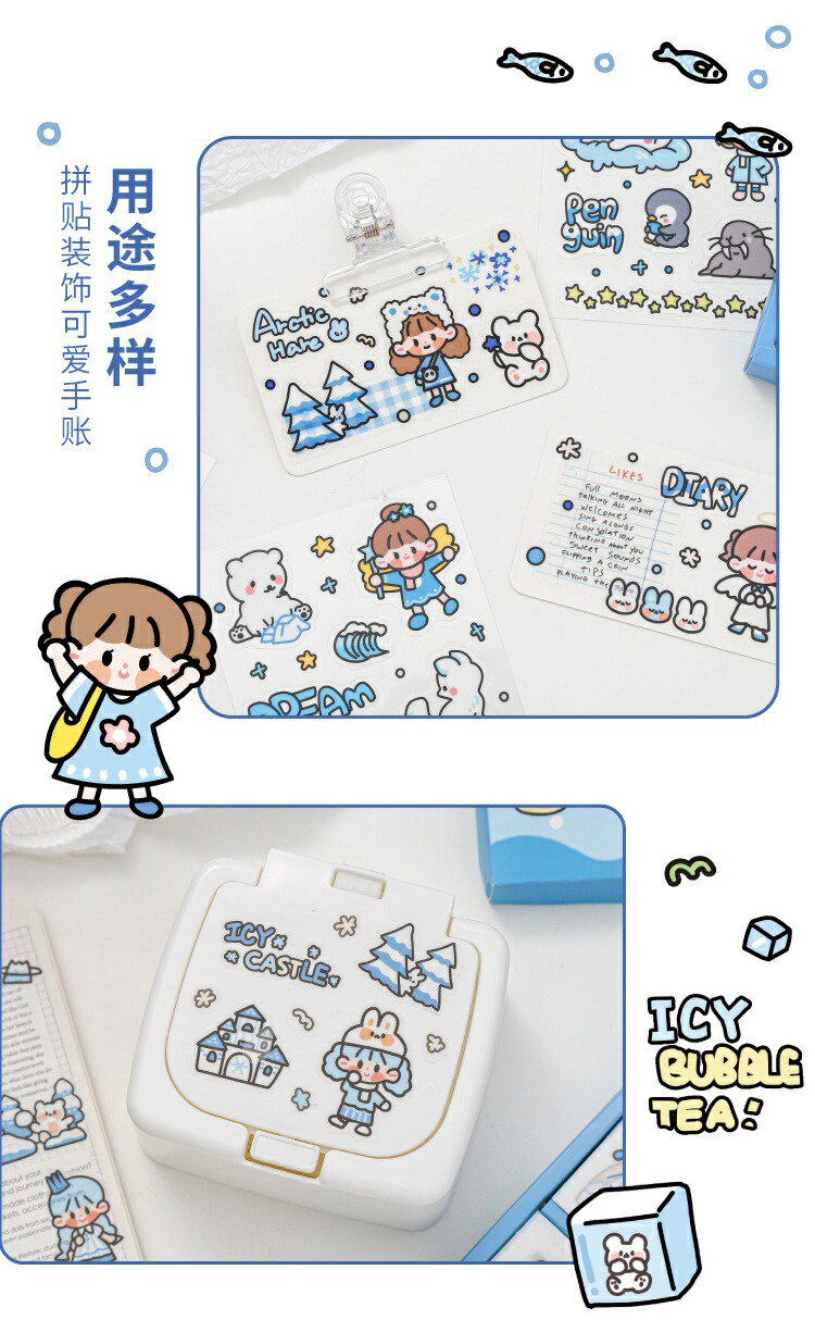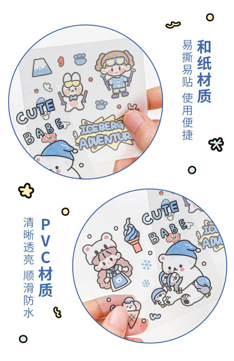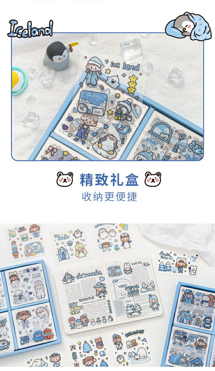 5. 超夯款可愛貼紙 1盒100張 軟軟極地世界系列 PET 防水貼紙 DIY 手帳貼紙 裝飾貼紙 ins風 手帳貼紙禮