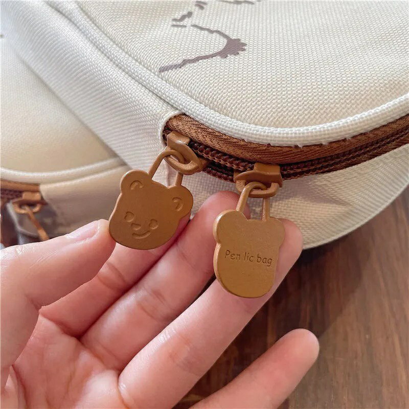 ins 熊熊 大容量 帆布筆袋 拉鍊款 筆袋 文具袋 帆布筆袋 學生筆袋 鉛筆盒 化妝包 『蓁澄媽好物』筆袋 4