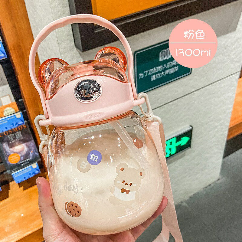 『網紅胖胖熊』水杯 大肚子水杯 1300毫升 大容量水瓶 高顏值吸管杯 塑膠水瓶 便攜水壺 環保杯 冷水瓶 1