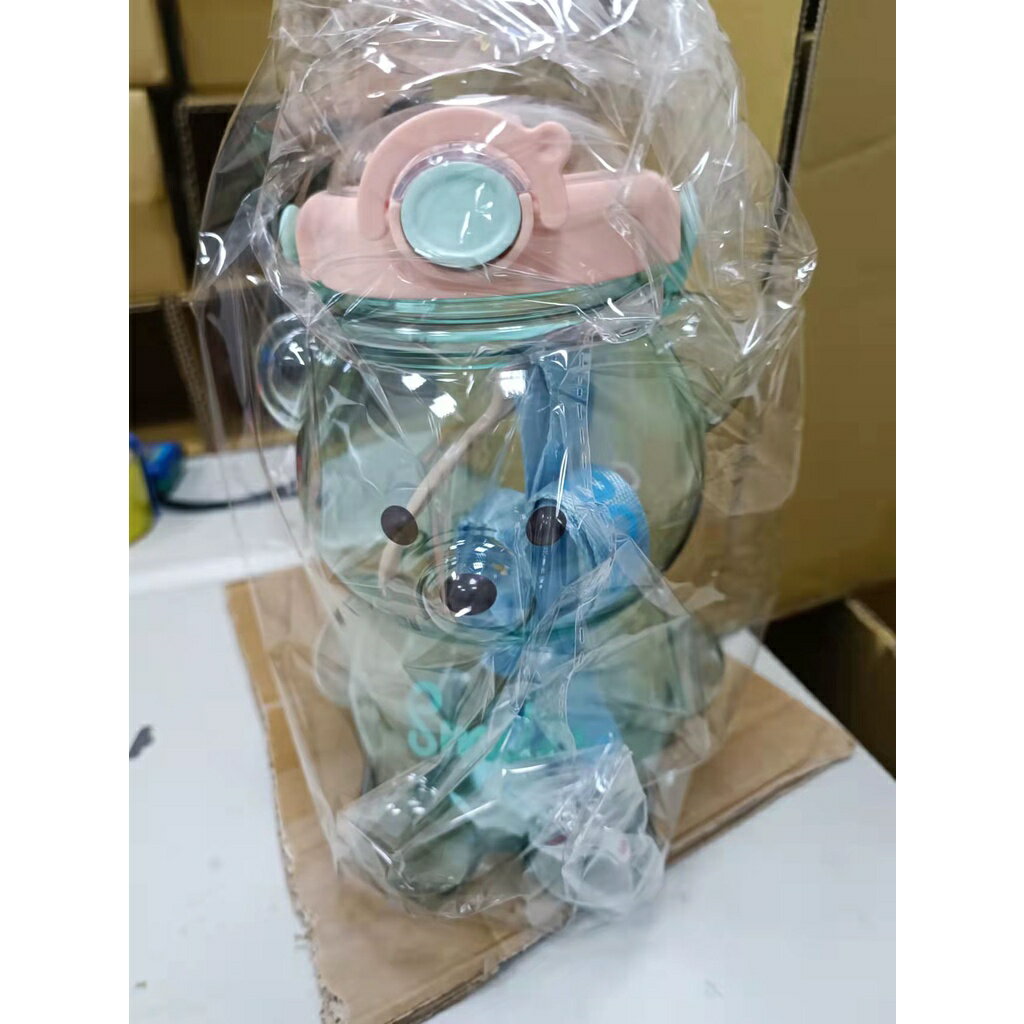 網紅款卡哇伊熊塑膠水瓶帶吸管便攜帶可愛兒童水瓶女孩夏季大容量泡茶杯 可當手機支架塑膠杯子 2
