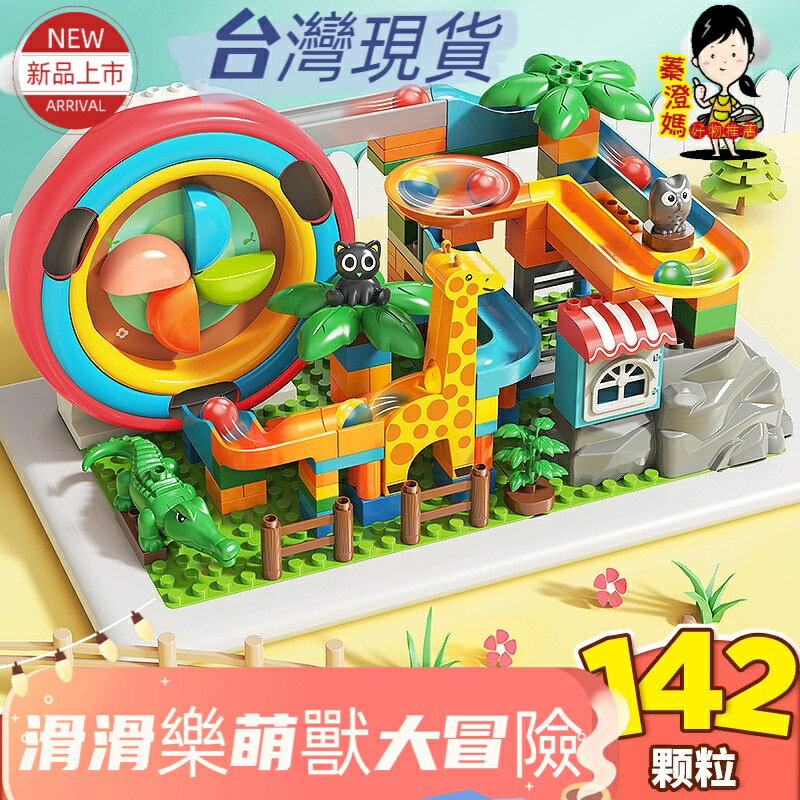 新品上市🎀 滑滑樂萌獸大冒險 積木 大顆粒積木相容樂高得寶系列:142颗粒🎀此款無底板 兒童積木 0