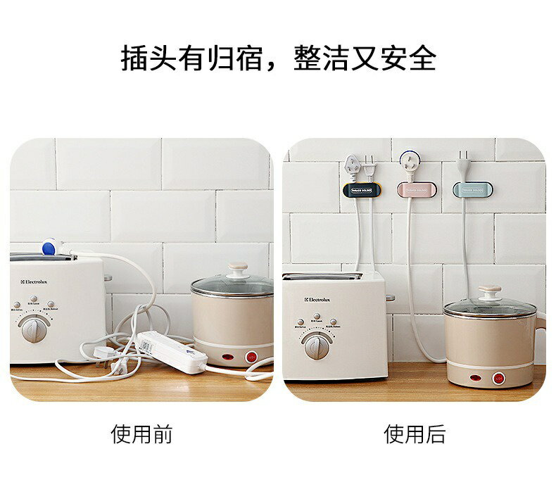 插頭固定器 無痕插頭固定器 壁掛理線器 家用創意電線收納神器 插座掛鉤一組4入 2