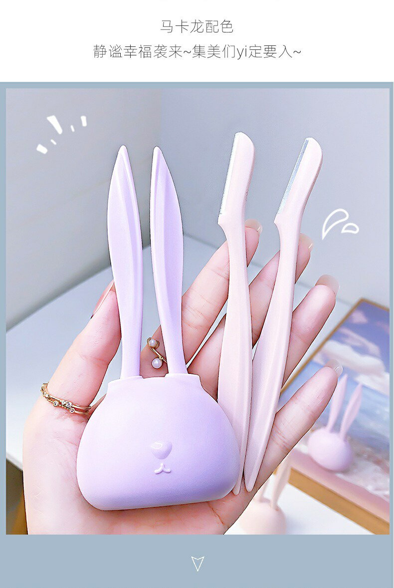 炫彩芬齡萌兔迷你修眉刀安全刮眉刀两支修眉套裝初學者女眉刀 3