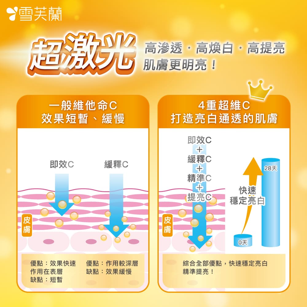 亮白維生素C “SAP”能精準提亮,賦予肌膚明亮光感,使肌膚透出青春白嫩光采。