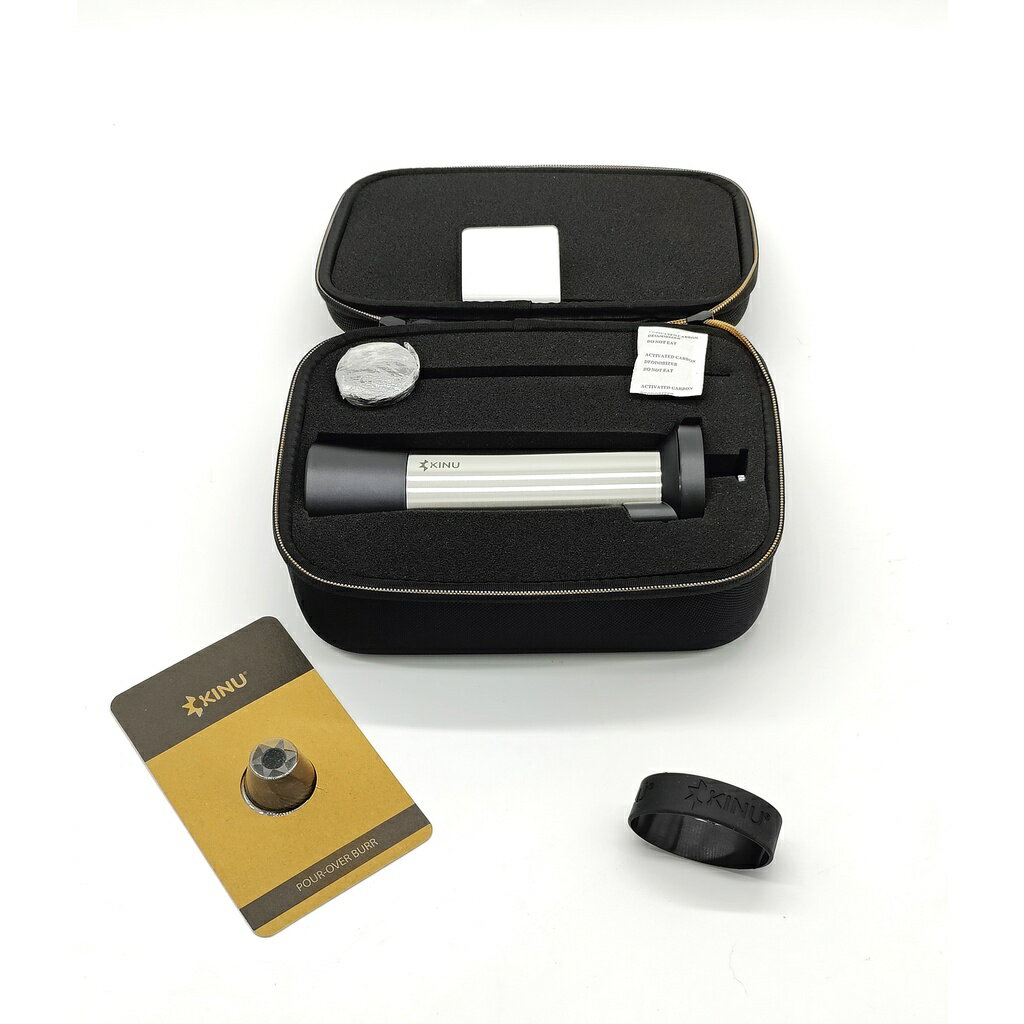 2023年9月起 KINU M47 PHOENIX 原ABS材質接粉杯已經全面升級成鋁合金接粉杯 (官網價格些微上調) KINU M47 Simplicity 原ABS材質接粉杯已經全面升級成鋁合金磁吸接粉杯 (官網價格些微上調) KINU M47 CLASSIC 握把也從塑膠升級成鋁合金 賣場不定時發放折扣卷 外加關注賣場可領 2% 蝦幣回饋,下單前請先關注 剛剛更新了2023年 KINU 授權經銷商證書,請參考(圖三) ****再次強調,KINU沒有出品所謂防跳豆蓋,我知道坊間有,但買之前你可以問自己,為什麼KINU網站上看不到這產品**** 加購手沖刀盤的客戶請看這邊(能接受再加購手沖刀盤): 由於KINU手沖刀盤德國來的時候經常發生包裝破損,如最後一張圖,本店不勝其擾, 決定即日起凡購買手沖刀盤加碼送Cafec 一人份麻濾紙兩包(100入) 本店保證刀盤為全新沒有用過!! 德國進口,本公司為德國原廠正式授權經銷商(見圖三) 正 2023 德國 KINU PHOENIX & Simplicity & CLASSIC 手動磨豆機 附原裝旅行收納包,加贈KINU原裝矽膠止滑圈 真抱歉,因為德國KINU沒有出品所謂的防跳豆蓋,所以本賣場沒有賣防跳豆蓋, 不過我想KINU這幾款磨豆機如果真的有需要防跳豆蓋,KINU應該早就自己推出了吧 這就好像下面這部車 五千萬台幣以上的McLaren P1,大家第一眼看一定覺得尾燈那邊左右各有兩個大洞,套用一般車子的概念,就覺得是不是該買兩個玻璃罩把它罩起來,但其實就是畫蛇添足,跟KINU裝防跳豆蓋一樣意思 非新瓶裝老酒 圖八為新、舊版說明書的差異 賣場可加購KINU出品手沖專用刀盤,加上原廠刀盤,加購完共2刀盤 KINU M47 PHOENIX (入門款) 高端不銹鋼單份量手動咖啡磨豆機。 高精度軸對準,無需調整。 矽膠材質防滑,容易操作。 微米級,可複製的無段調整,易於調整研磨粗細。 輕巧的接粉罐,附矽膠O型環。 47毫米專業級錐形刀盤,磨豆速度快,表面經過Black-Fusion處理。 全滾珠軸承設計 所有塑膠部件均採用食品安全ABS製成。 材質 本體:高碳鋼 接粉罐: ABS塑膠 重量: 1400克 接粉罐容量: 最大34克 刀盤直徑: 31.6mm(內錐) 47mm(外環) KINU M47 Simplicity ( 中階款) 高端不銹鋼單份量手動咖啡磨豆機。 獨特的莫爾斯錐面原理全金屬結構,刀盤可以自動對準中心 拇指止滑設計,便於操作。 微米級,可複製的無段調整,易於調整研磨粗細。 輕巧的接粉罐,附矽膠O型環。 47毫米專業級錐形刀盤,磨豆速度快,表面經過Black-Fusion處理。 全滾珠軸承設計 所有塑膠部件均採用食品安全ABS製成。 材質 本體:高碳鋼 接粉罐: ABS塑膠 重量: 1650克 接粉罐容量: 最大34克 刀盤直徑: 31.6mm(內錐) 47mm(外環) M47 CLASSIC (頂級經典款) 高端不銹鋼單份量手動咖啡研磨機。 獨特的莫爾斯錐面原理全金屬結構,刀盤可以自動對準中心 拇指止滑設計,便於操作。 微米級,可複製的無段調整,每轉最多可進行50格。 不銹鋼材質,11個磁石的接粉罐以及豆倉。 47毫米專業級錐形刀盤,磨豆速度快,表面經過Black-Fusion處理。 全滾珠軸承設計 所有塑膠部件均採用食品安全ABS製成。 材質 本體:高碳鋼 接粉罐: 不鏽鋼 重量: 1850克 接粉罐容量: 最大30克 刀盤直徑: 31.6mm(內錐) )47mm(外環) 起標價即售價,現貨供應,全新未使用。 可順豐貨到付款,運費100元 歡迎利用樂天店長客服或是參考「關於賣場」裡的資訊 M47PHOENIX ABS粉杯+止滑圈 最新PHOENIX 配鋁合金接粉杯 M47 Simplicity+止滑圈 最新Simplicity配鋁合金磁吸粉杯 M47CLASSIC+止滑圈+粉罐 PHOENIXABS粉杯+手沖刀盤+止滑 最新PHOENIX鋁合金接粉杯+手沖刀 Simplicity+手沖刀+止滑圈 最新Simplicity磁吸粉杯+手沖刀 CLASSIC+手沖刀盤+止滑圈+粉罐