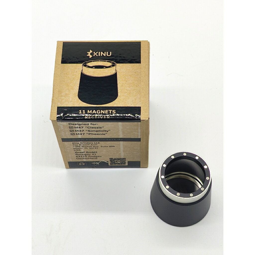 可 7-11 & 全家超商取貨臺北可面交自取,自取地點(1)新北市新店區捷運七張站(2)臺北市建國北路南京東路德國進口,正式授權經銷商剛剛更新了2023年 KINU 授權經銷商證書,請參考(圖三)****再次強調,KINU沒有出品所謂防跳豆蓋,我知道坊間有,但買之前你可以問自己,為什麼KINU網站上看不到這產品****賣場為 KINU M47 磨豆機正廠專屬配件,不是正廠的我不賣(1)M47 手沖刀盤此刀盤為 KINU 特別為手沖愛好者設計的,對應 M47 Classic、Simplicity 和 Phoenix(2)KINU M47 專用原廠收納盒,此為2021年以後KINU M47 標配,供在此之前購入的客人選購(3)Classic和Simplicity 專用 ABS 食用塑膠 O環接粉器,原廠盒裝,一盒兩個(4)矽膠止滑環,增加握感跟摩擦力,特別是在研磨淺烘焙咖啡時,原廠盒裝,一盒兩個(5)Classic和Simplicity 專用 11顆磁鐵磁吸接粉器,本體及內裡不銹鋼材質,外殼包覆ABS食用塑膠圖8為收納盒示意圖,不包含磨豆機起標價即售價,現貨供應,全新未使用。可順豐貨到付款,運費100元歡迎利用樂天店長客服或是參考「關於賣場」裡的資訊KINU M47 原廠手沖咖啡專用刀盤KINU M47 原廠旅行收納盒KINU M47 ABS 接粉罐KINU M47 原廠 矽膠止滑環11顆磁鐵磁吸不銹鋼接粉罐(外殼ABS)KINU 2023 鋁合金接粉罐KINU 2023 鋁合金磁吸接粉罐