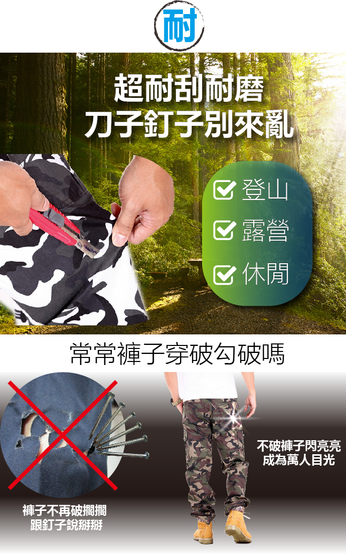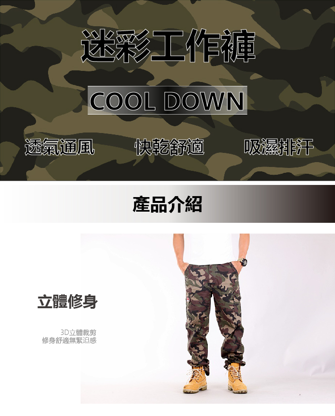 CS衣舖 輕薄耐磨 防割 軍規級 迷彩戰術 六口袋工裝褲 300123