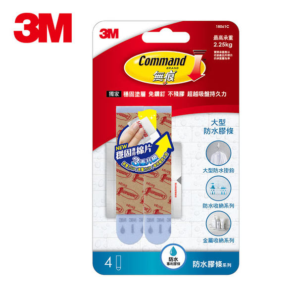 雙面膠 3M 18061C 大型防水無痕膠條 (4片裝)【領券800折50最高再折千】12/31止
