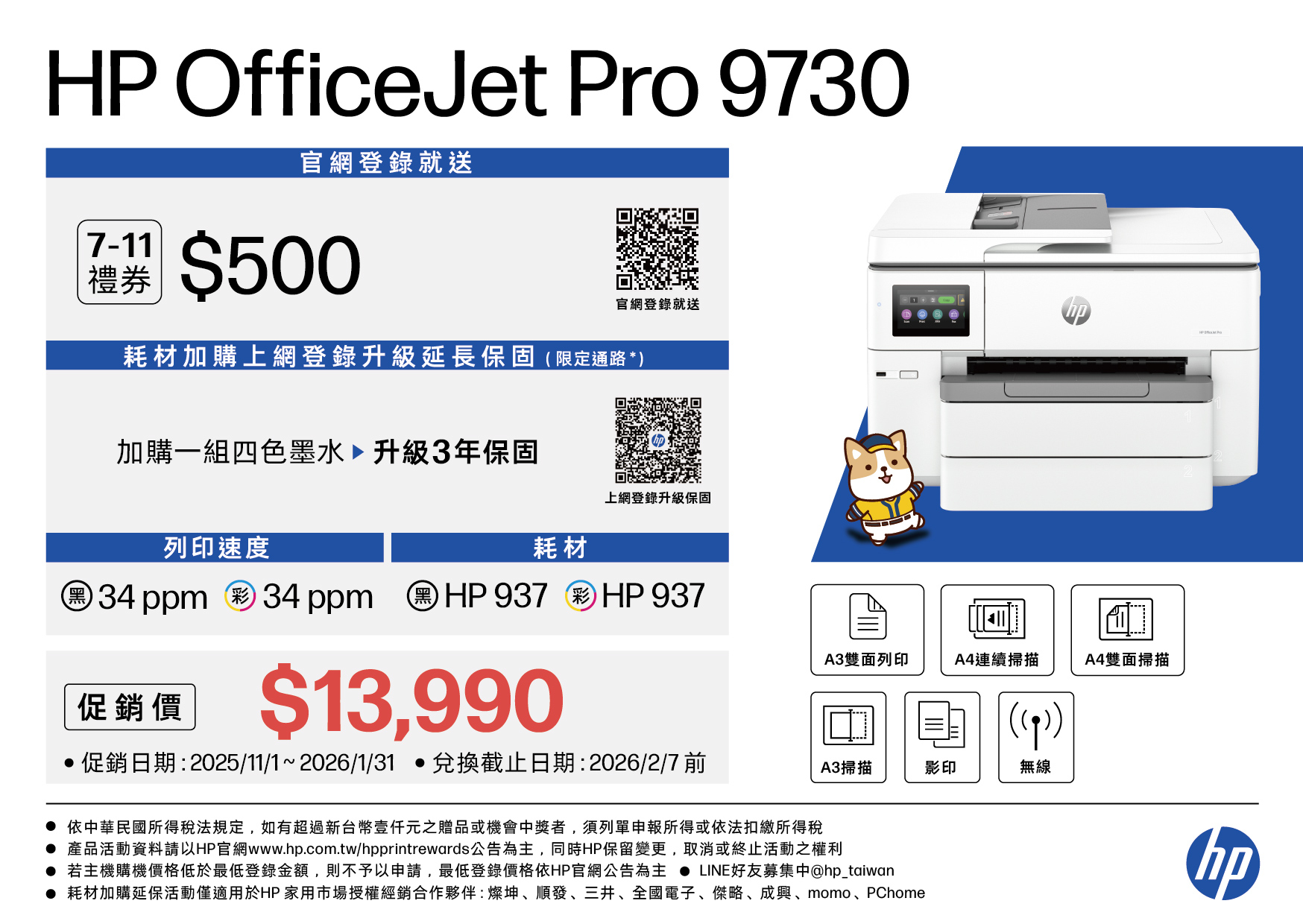 HP 937 CMYK 原廠墨水匣 (4 入)(6C3Z9NA)/黑1450頁 彩800頁