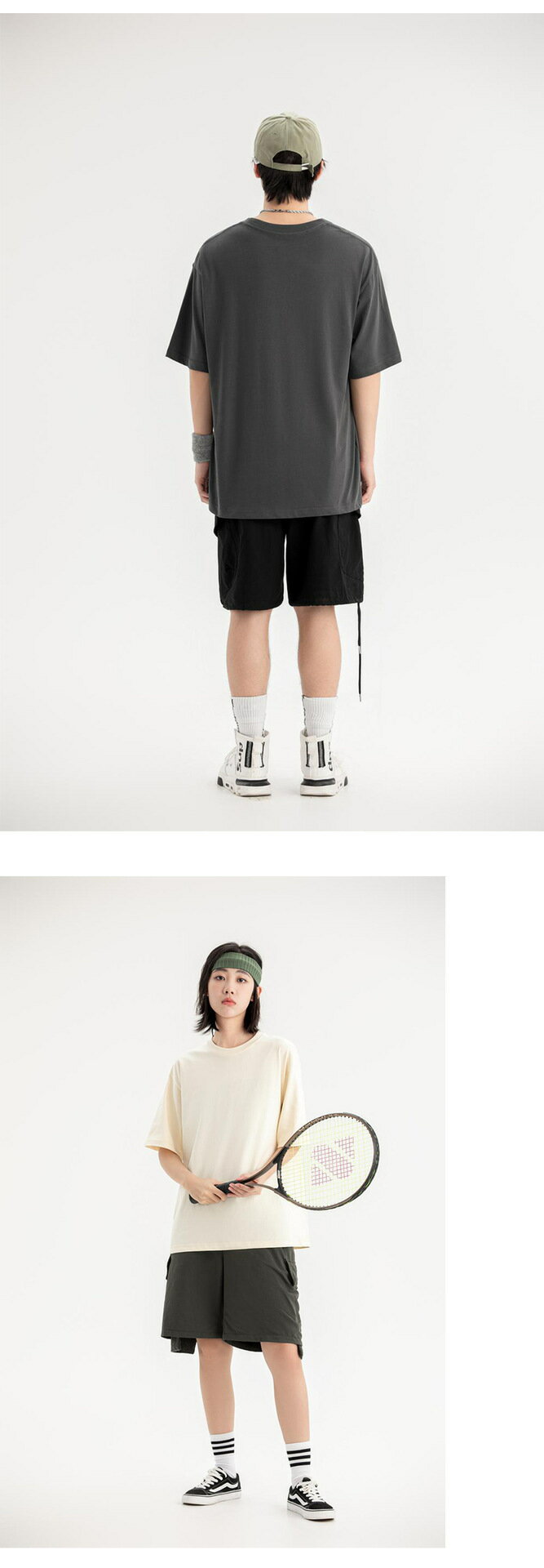 【喜挖】250g內搭內搭衫女春短袖純棉落肩T恤男圓領純色情侶純棉款 5