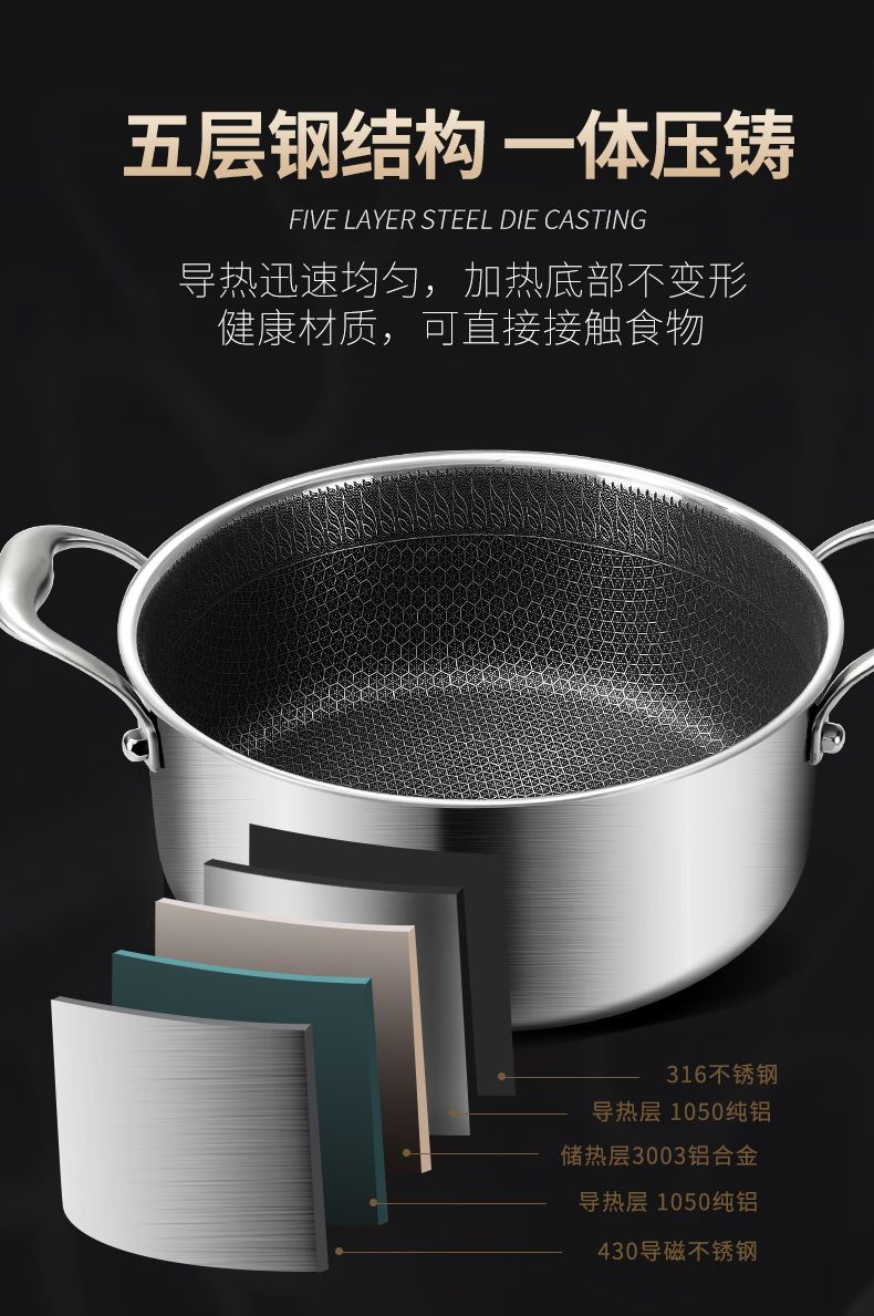 6. 【喜挖】加厚不銹鋼湯鍋無塗層家用蒸煮燉鍋帶蓋雙耳煲湯鍋灶具通用