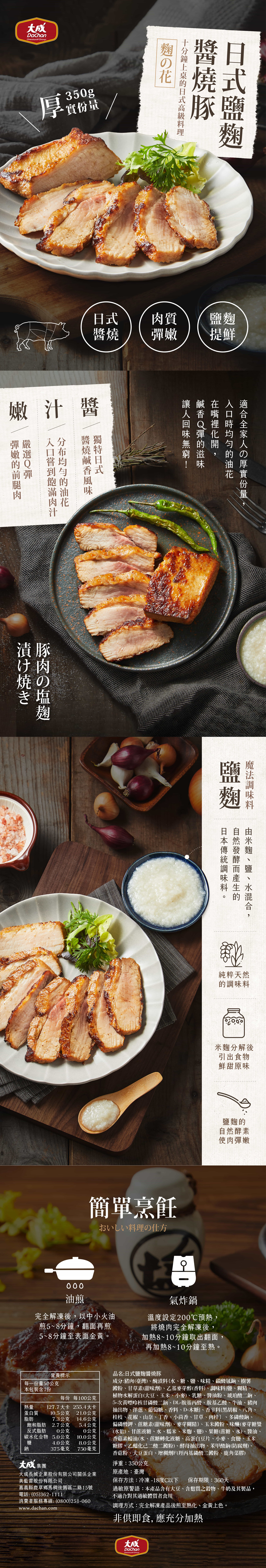 大成食品︱日式鹽麴醬燒豚*1包(350G/包) 鹽麴 養生 烤肉 燒肉 烤箱 氣炸鍋 台灣豬
