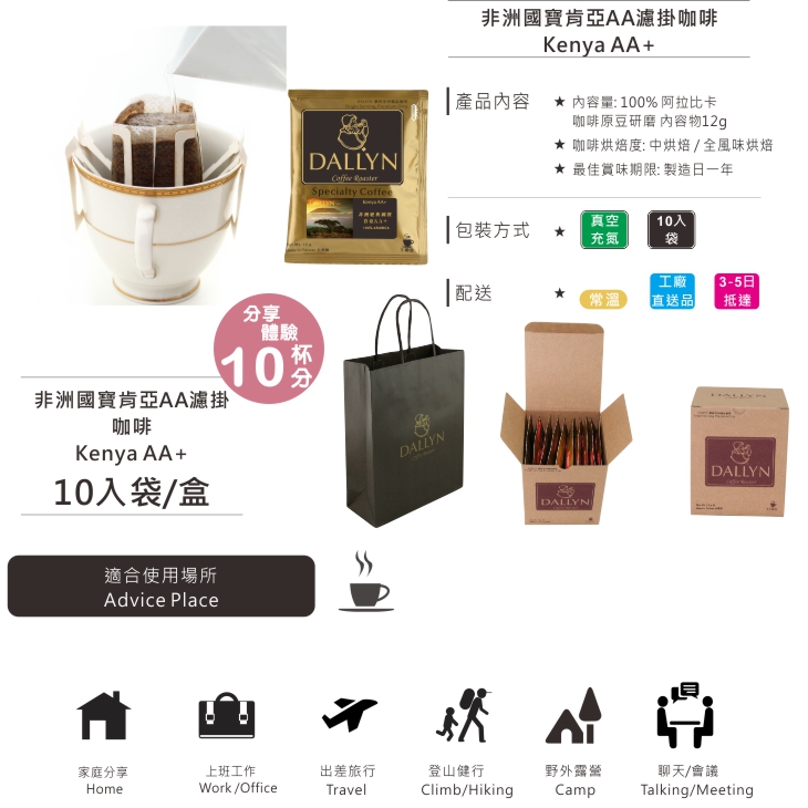 DALLYN世界嚴選莊園 | 肯亞AA濾掛咖啡 Kenya AA ★滿299元超取免運 , 滿1500元店家宅配免運★