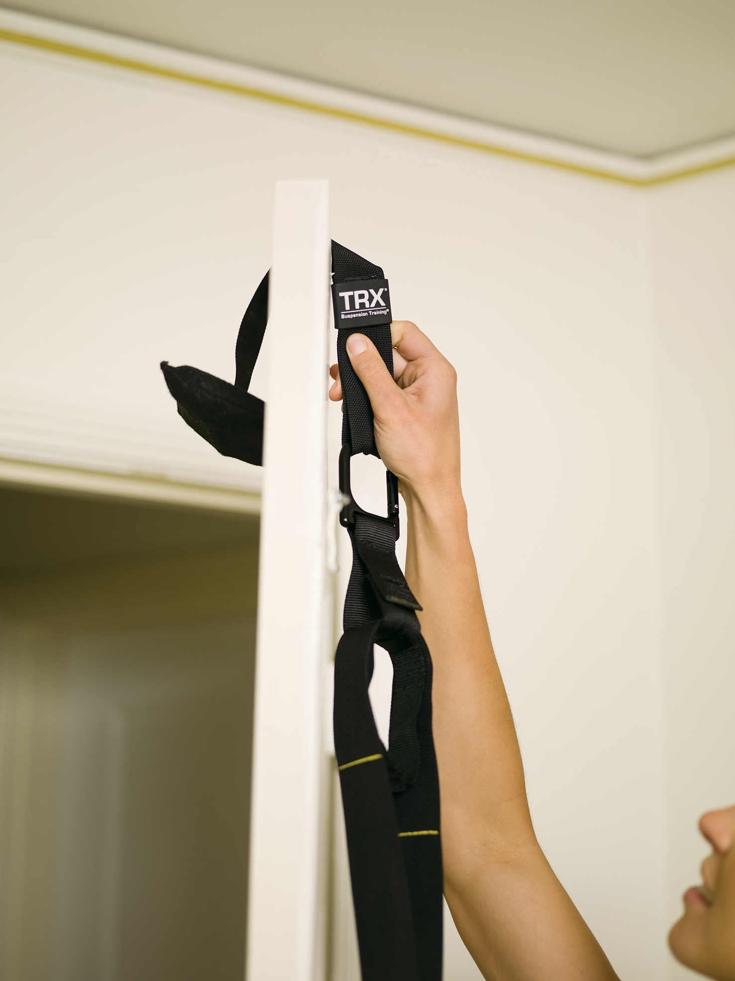 TRX門檔搭配懸吊訓練繩即可隨時隨地進行多功能懸吊訓練,經過原廠耐用測試的高級尼龍材質,安裝簡易攜帶方便,只需固定在任何堅固的門上即可將居家、辦公室、飯店..等打造成為個人專屬健身房。