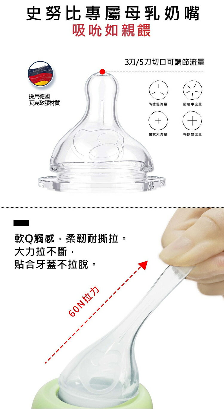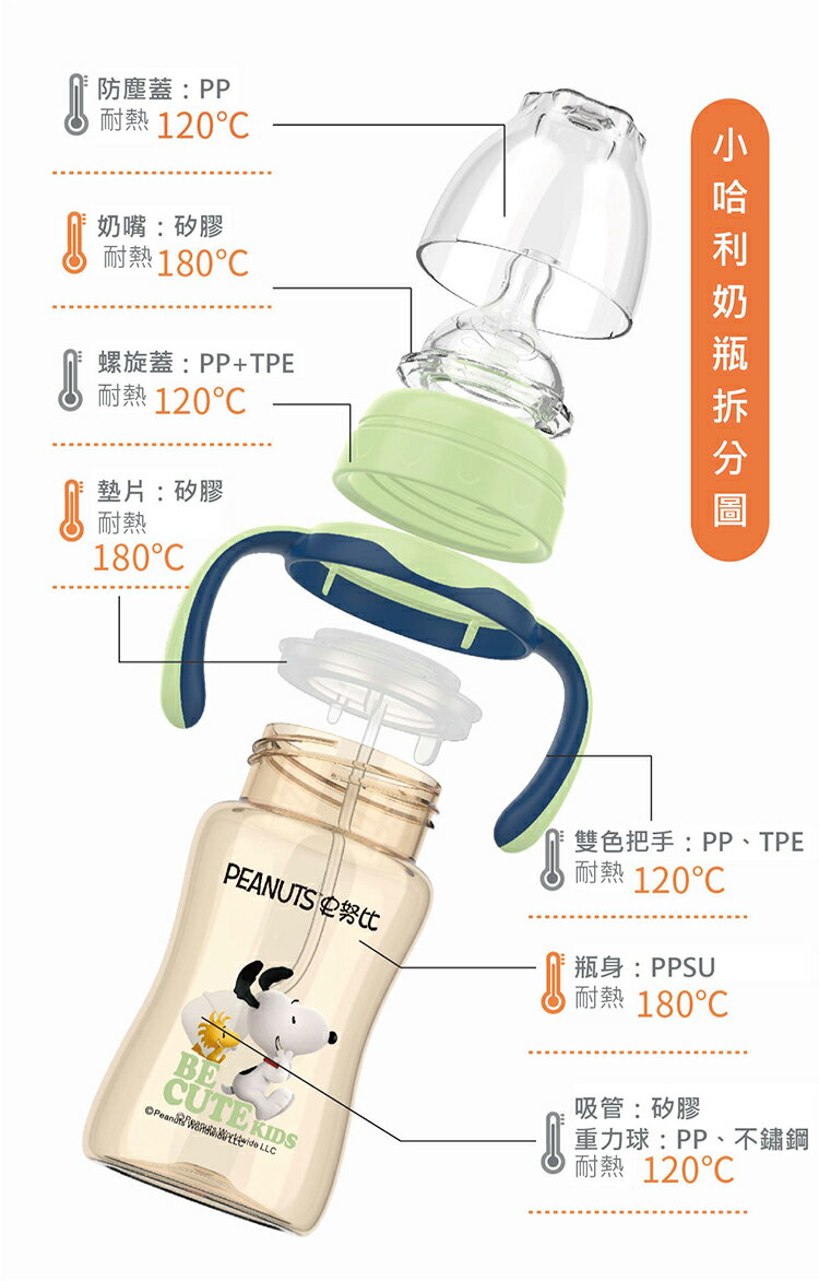✅ 嚴選食品級PPSU原料,通過TAF檢驗。✅ PPSU材質,瓶身呈透明琥珀色,無添加染色料不含雙酚A,✅ 耐熱180℃高溫不變形、耐酸鹼,耐摔耐撞質地堅韌不易變形。✅ Airloop防脹氣設計,單向進氣口,減少奶中氣泡,吸奶不費力。✅ 專屬母乳奶嘴,吸吮如親餵,軟Q柔韌耐撕拉。✅ 四種奶嘴流量尺寸,各流量可依寶寶成長吸奶速度做更換。✅ 符合人體工學防滑把手,磨砂軟質,寶寶抓握更省力。✅ 花瓣造型防塵蓋,可當量杯使用,花形瓶底,平放不易隨意滾動●瓶身:聚亞苯基碸 (-20℃~180℃)●螺旋蓋(螺牙)、奶瓶蓋、把手:聚丙烯 (-20℃~100℃)●吸嘴、吸管:矽膠 (-20℃~180℃)●重力球:聚丙烯、不鏽鋼(-20℃~100℃)容量:210ml / 270ml⚠️⚠️⚠️❗如需打統一編號,請於『電子發票』開立選項當中選擇❓如有任何疑問或任何需求,請於本賣場『店長客服』通知⭐本店提供『批發價』與專屬賣場,歡迎各大商家批發,如有需要請於『店長客服』通知寬口葫蘆PPSU奶瓶 210ml 綠色寬口葫蘆PPSU奶瓶 210ml 粉色寬口葫蘆PPSU奶瓶 210ml 黃色寬口葫蘆PPSU奶瓶 270ml 綠色寬口葫蘆PPSU奶瓶 270ml 粉色寬口葫蘆PPSU奶瓶 270ml 黃色