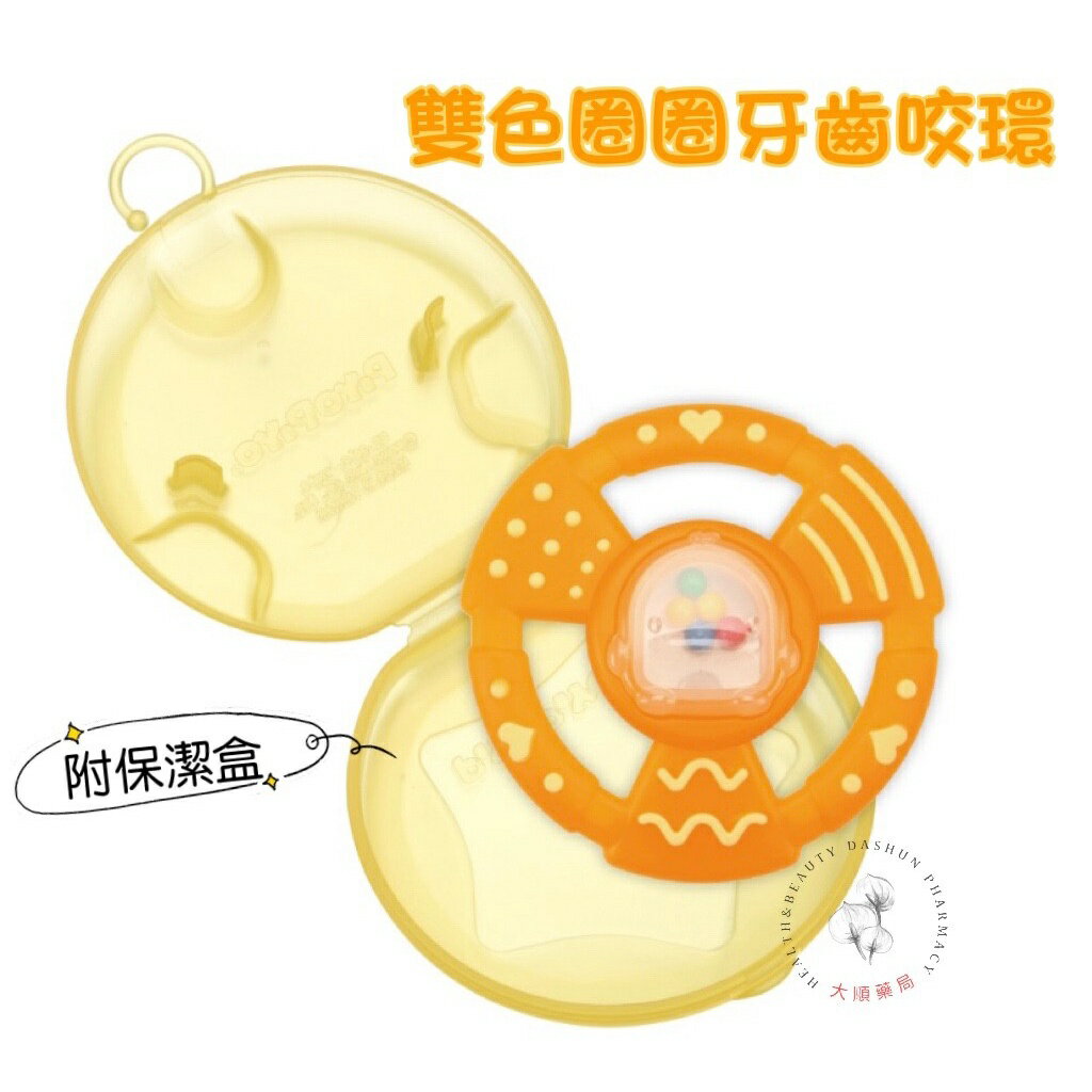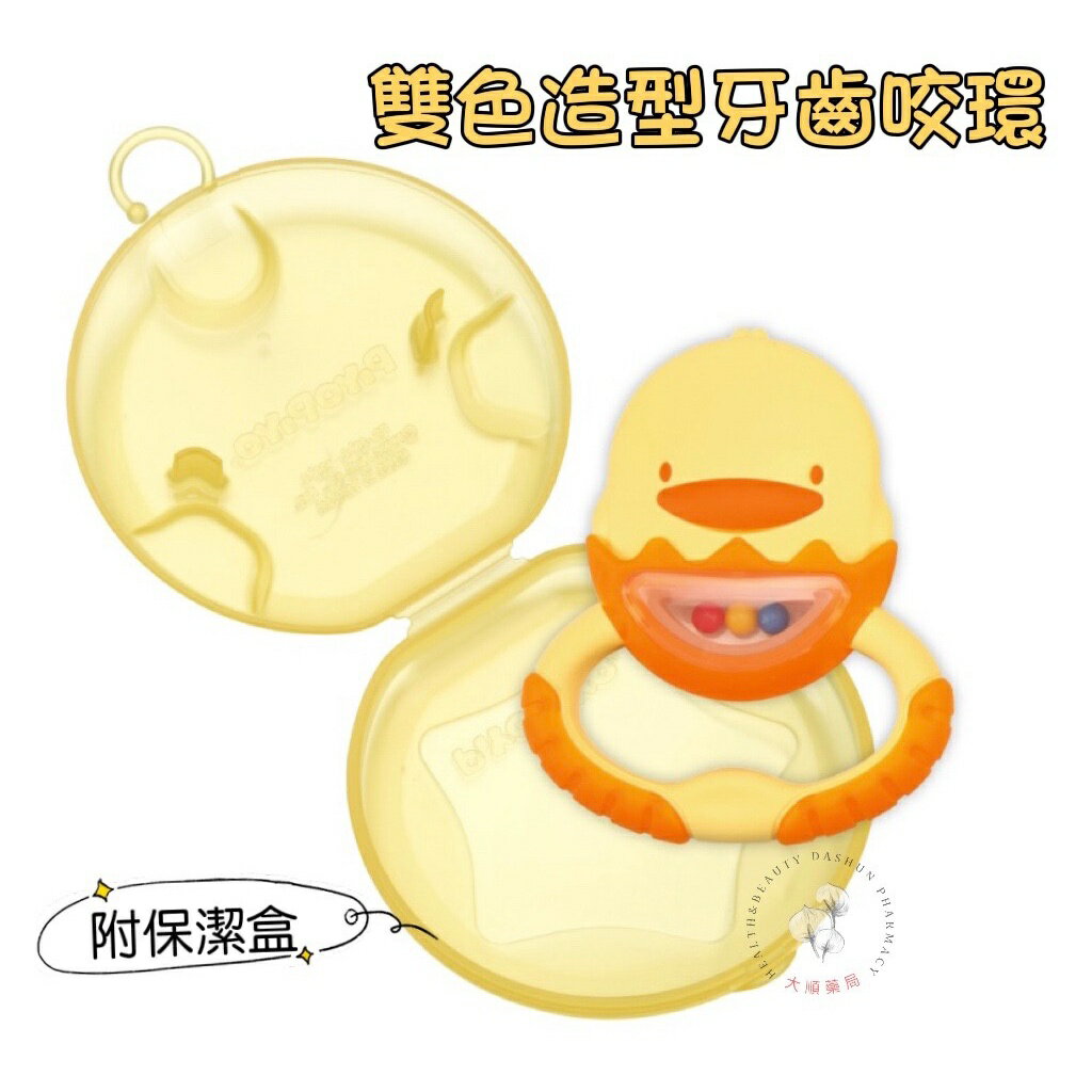 🌈大順藥局🌈黃色小鴨 Piyo Piyo - 雙色造型牙齒咬環(附保潔盒) / 雙色圈圈牙齒咬環(附保潔盒) 固齒器