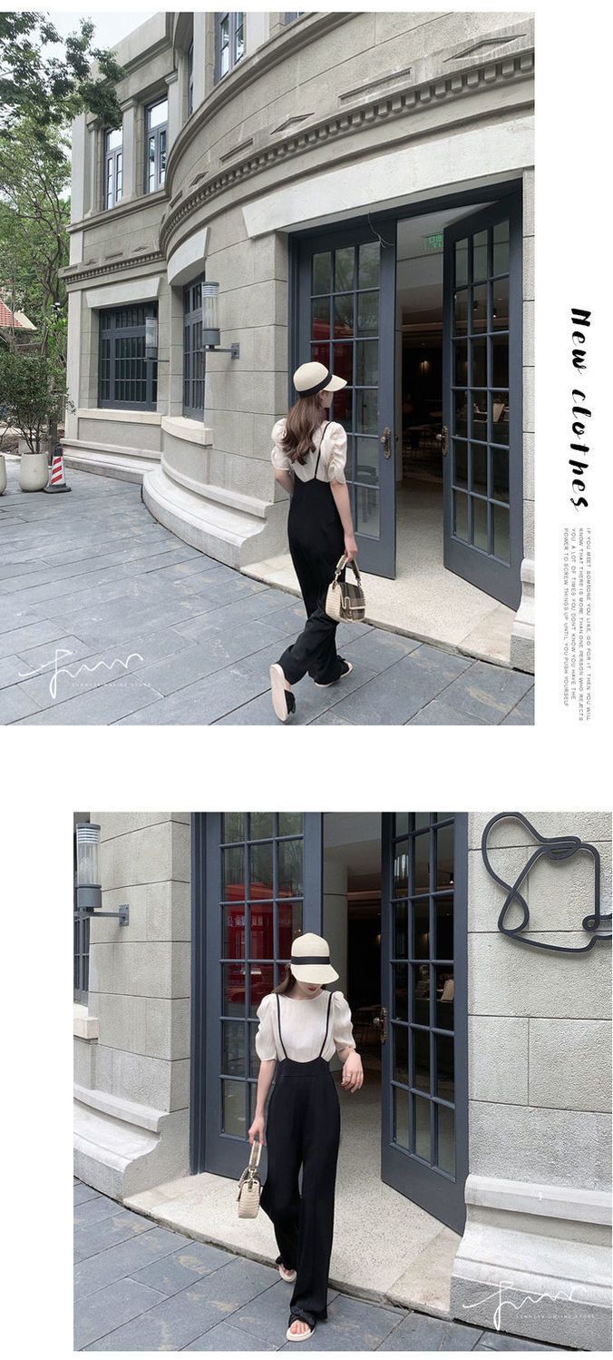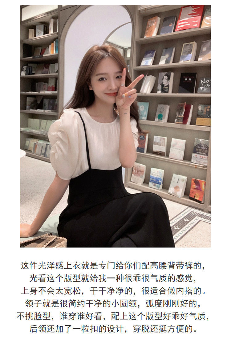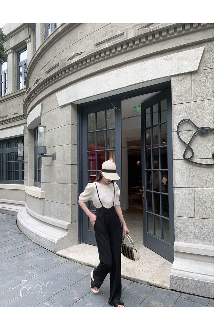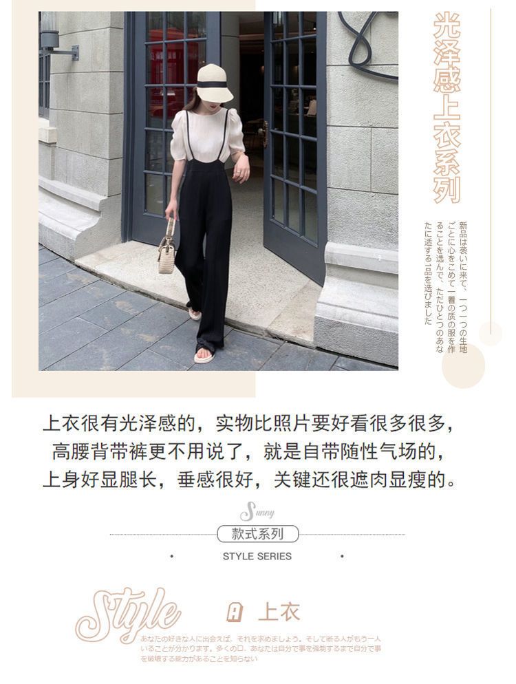 時尚套裝女短袖褲裝韓版氣質泡泡袖高腰背帶褲顯瘦兩件套【時尚大衣櫥】 8