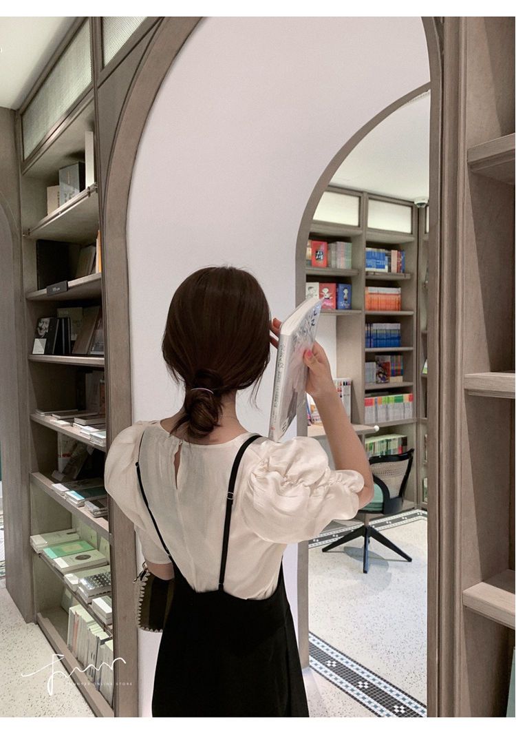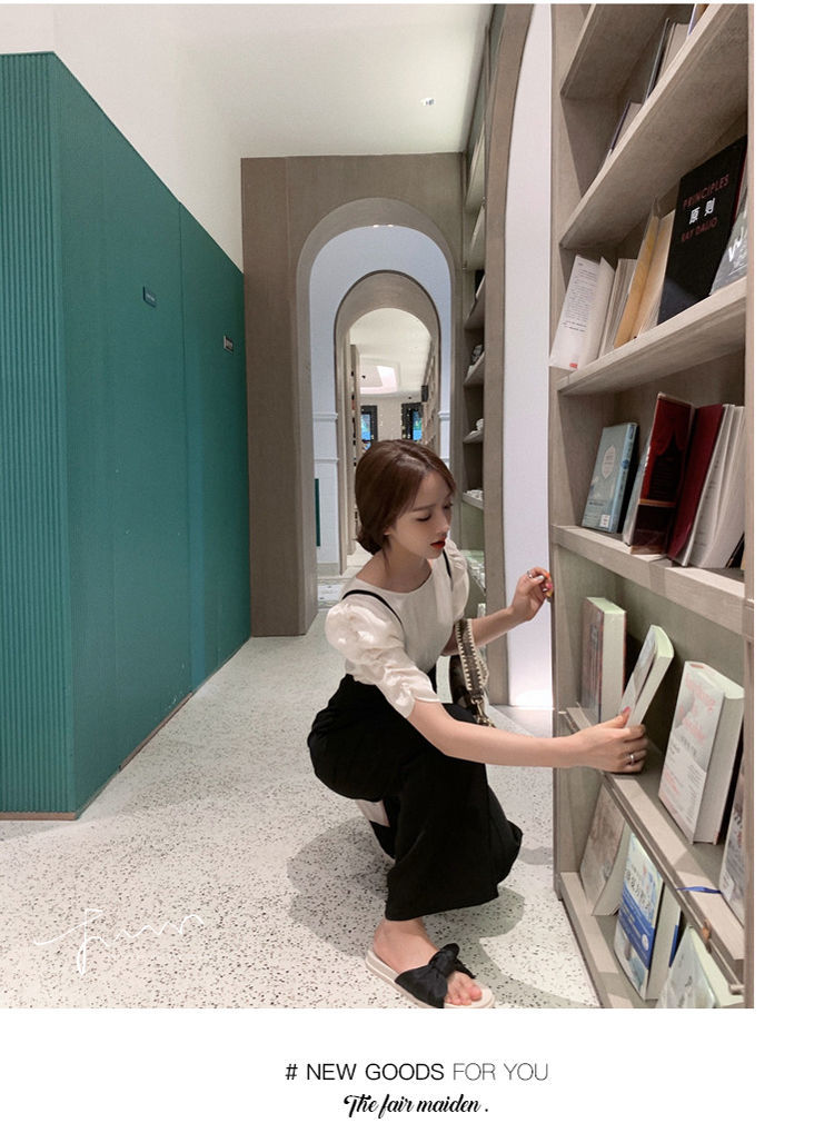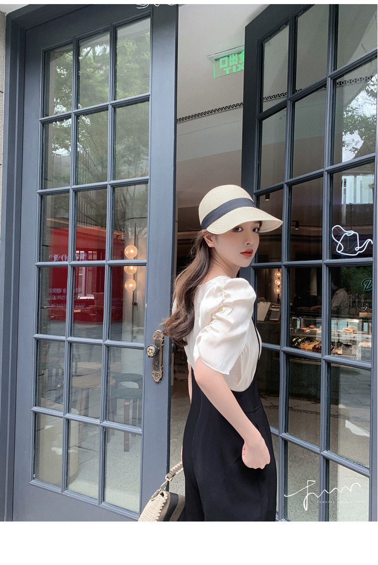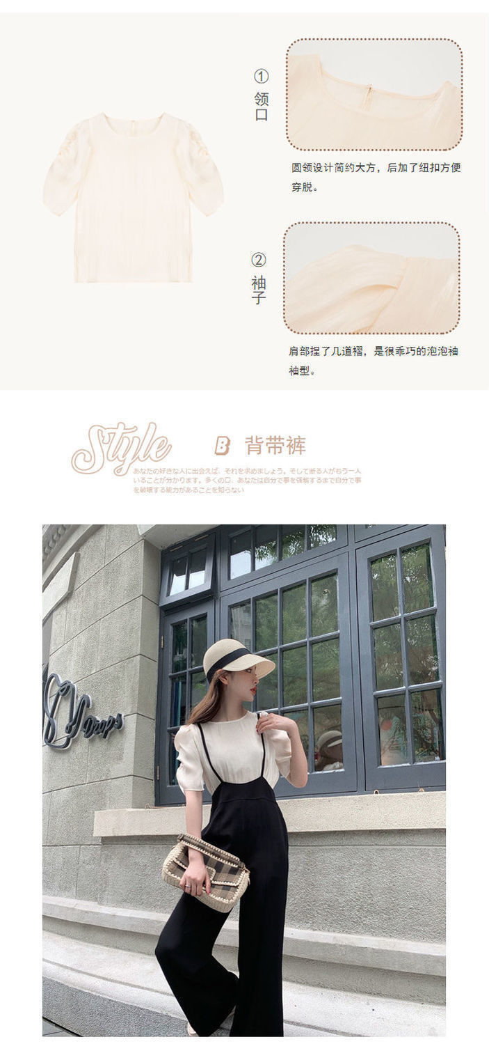 時尚套裝女短袖褲裝韓版氣質泡泡袖高腰背帶褲顯瘦兩件套【時尚大衣櫥】 8