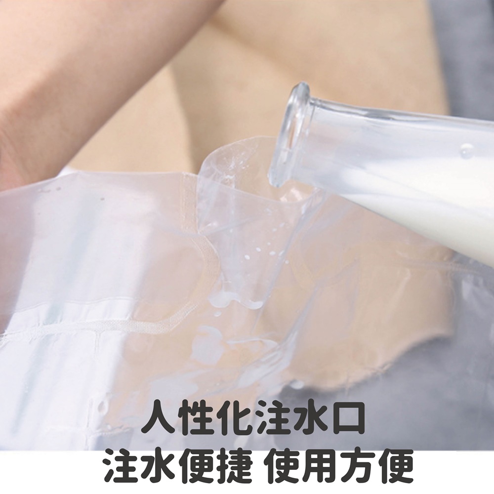 1. 緩緩注入,注滿後捏住開口翻轉冰袋