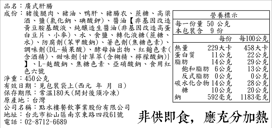 年節送禮,要到心坎裡!! 記得小時候去到年貨大街時,好多攤位都在販賣肝、臘腸 覺得很好奇,和胖胖的香腸長的都不一樣 後來才知道,有些人家每逢年節必要自製買購買來吃 這樣才有過年的氣氛 肝臘腸不僅可以直接蒸熟後切片食用,還可以做成廣式臘味飯 鹹香的滋味,不論是配飯、配麵或是當下酒菜都是很不錯的選擇 今年點水樓特別推薦這款「肝臘腸禮盒」 送禮、自用都很合宜 只可惜是「限量」的,要搶要快啊!