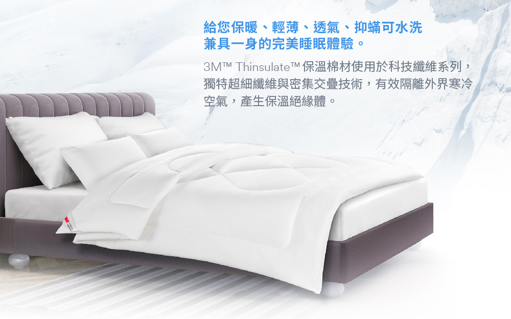 ◆抑塵蹣-3M Thinsulate科技纖維材質,由於本身非塵蹣食物,不易孳生塵蹣與增長。