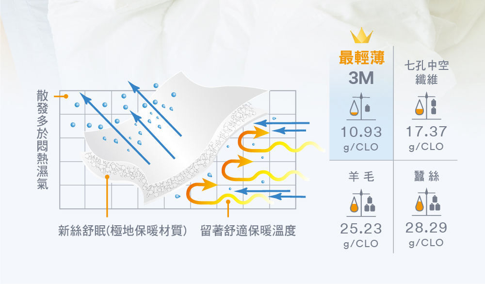 ◆超保暖-能密集交織出平衡溫差隱形空氣層,將身體所散發的熱能有效留在棉被內。