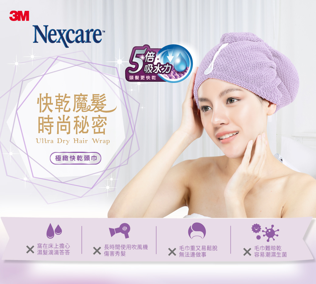 ●頭巾吸水力提升30%,加速頭髮更快乾
