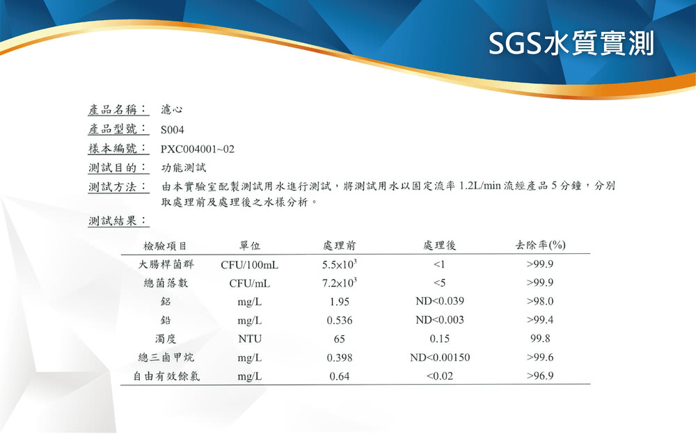 ●通過NSF42號及53號國際認證