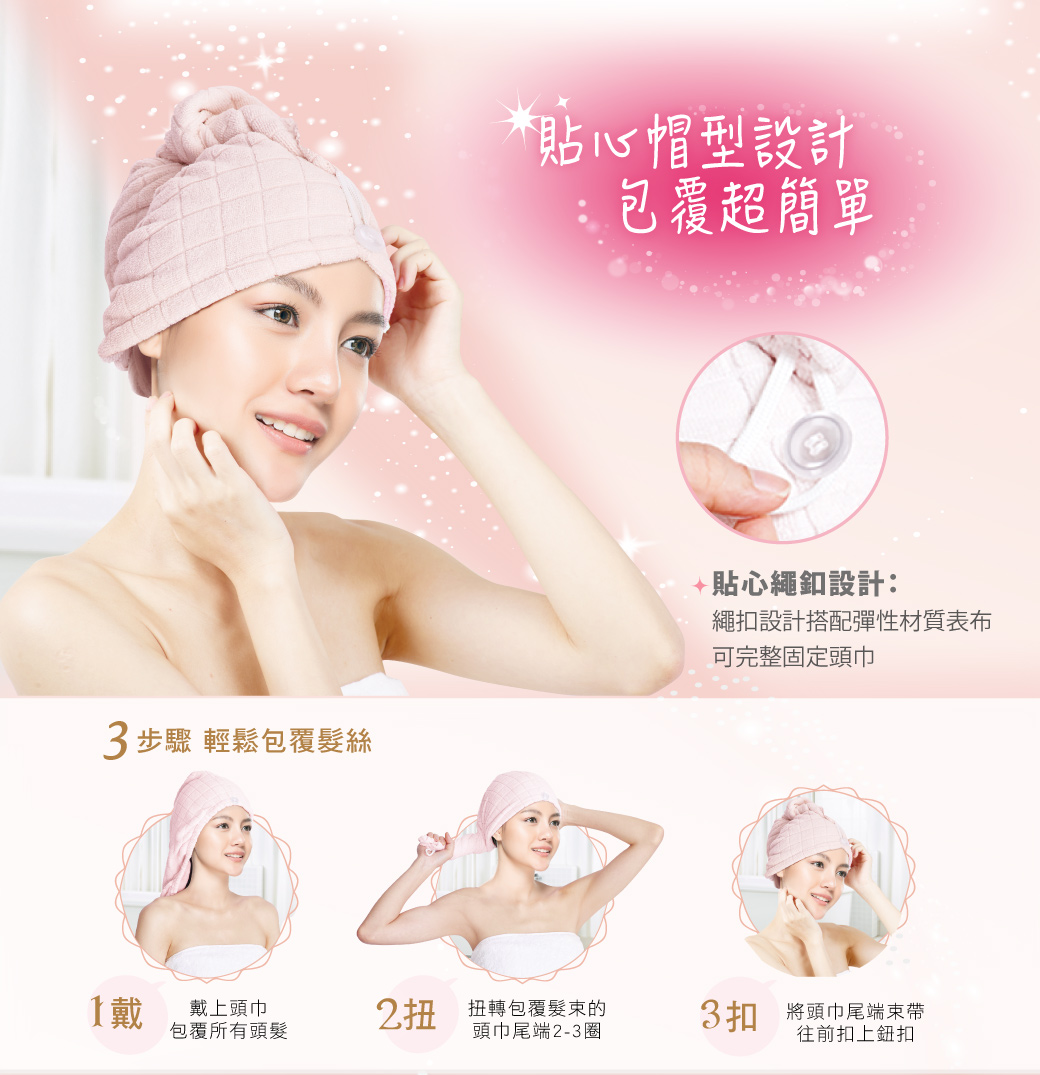 ★採用極細3D立體纖維材質,加速水分吸收,頭髮快速乾爽