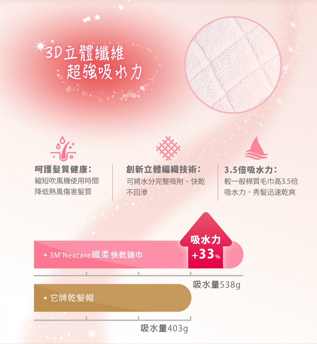 3M SPA 超強吸水纖柔快乾頭巾-2入(粉紅). 2