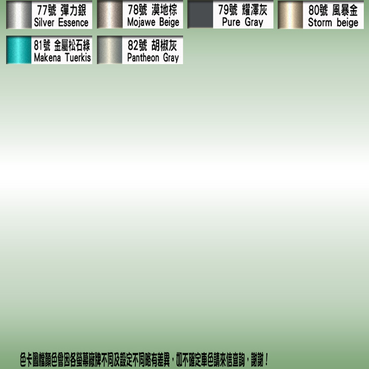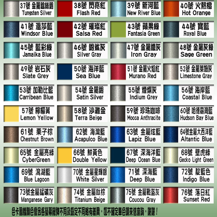 1.各式廠牌顏色一應俱全(全系列超過700色):酷色汽車補漆筆擁有最齊全的烤漆色系,不論您是哪一種廠牌的汽車,都能找到符合您愛車之烤漆顏色。