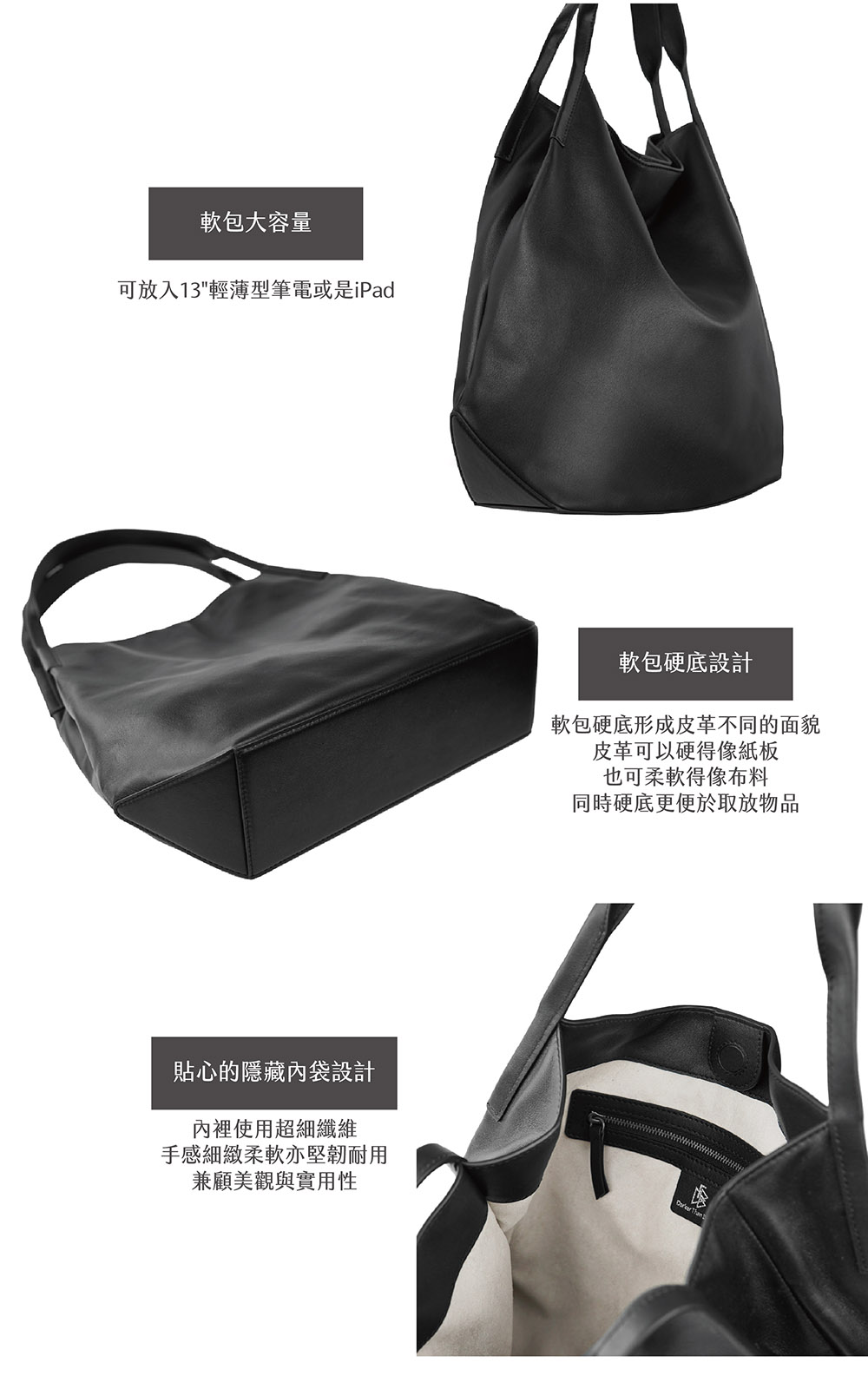 原創獨特設計包款,自然垂墜弧度,軟包硬底設計