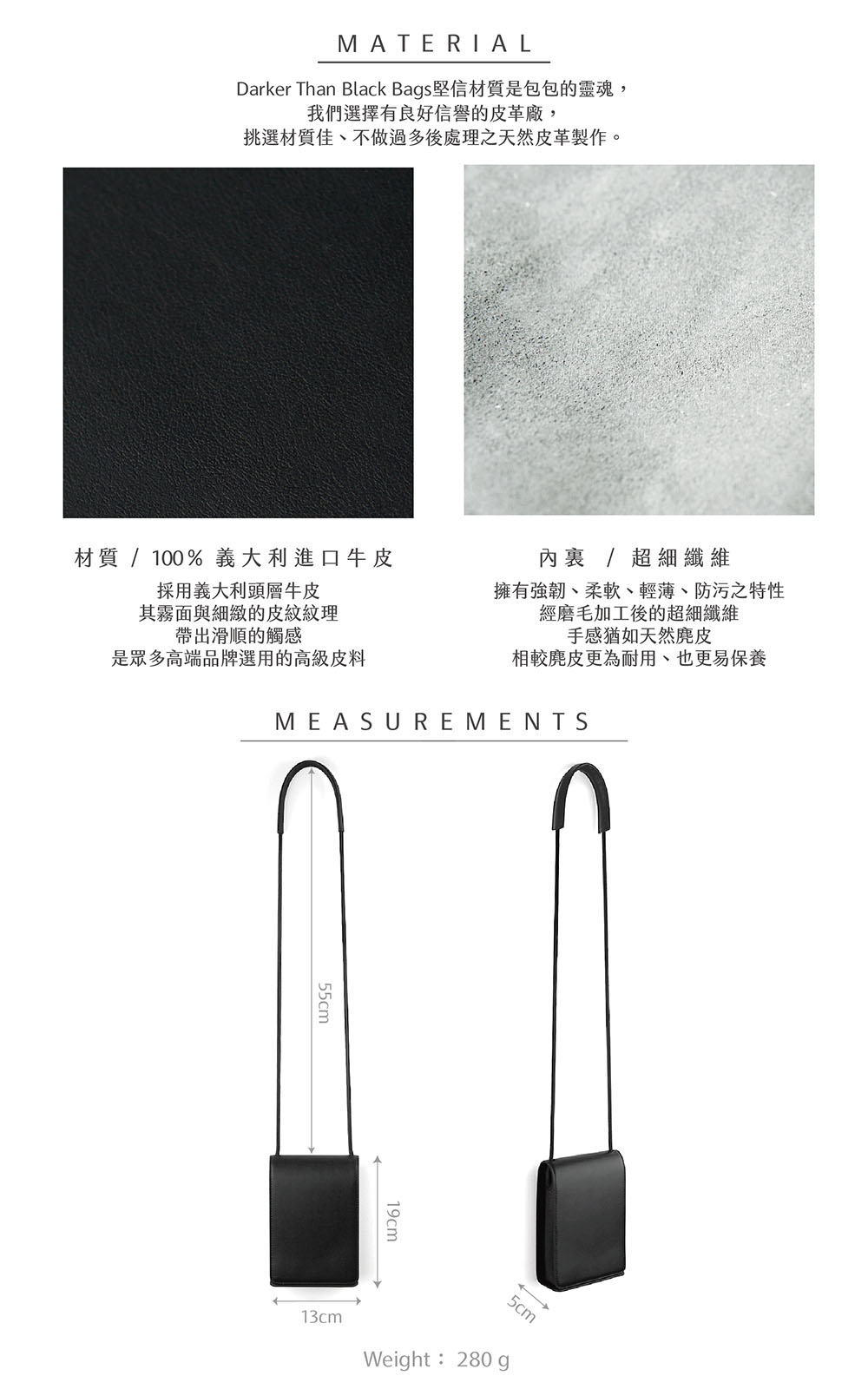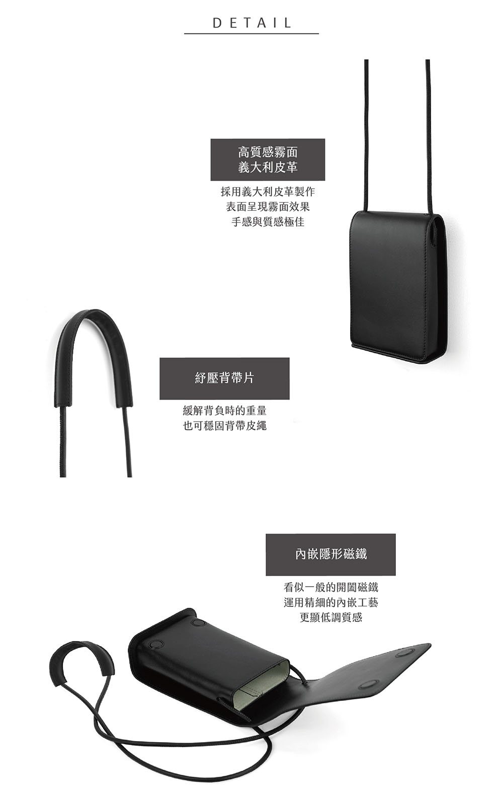 精選柔軟、輕量、細膩的皮革工法,完美極簡的方形設計
