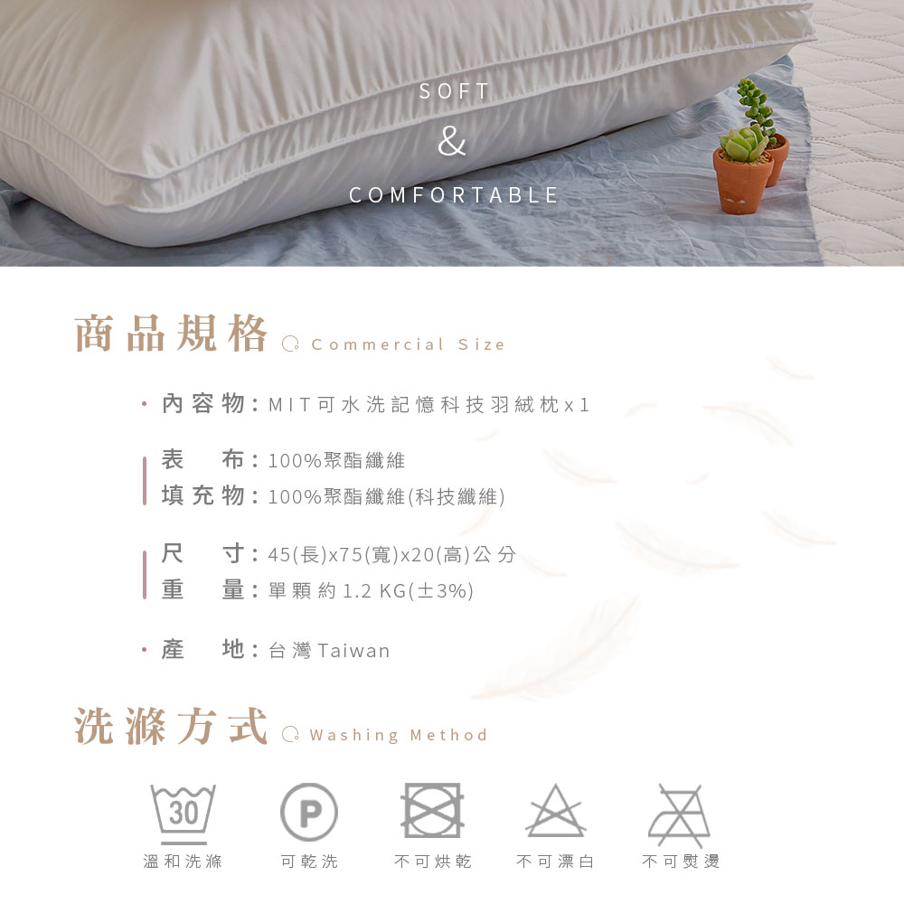 ◇內容物─可水洗記憶科技羽絨枕x1