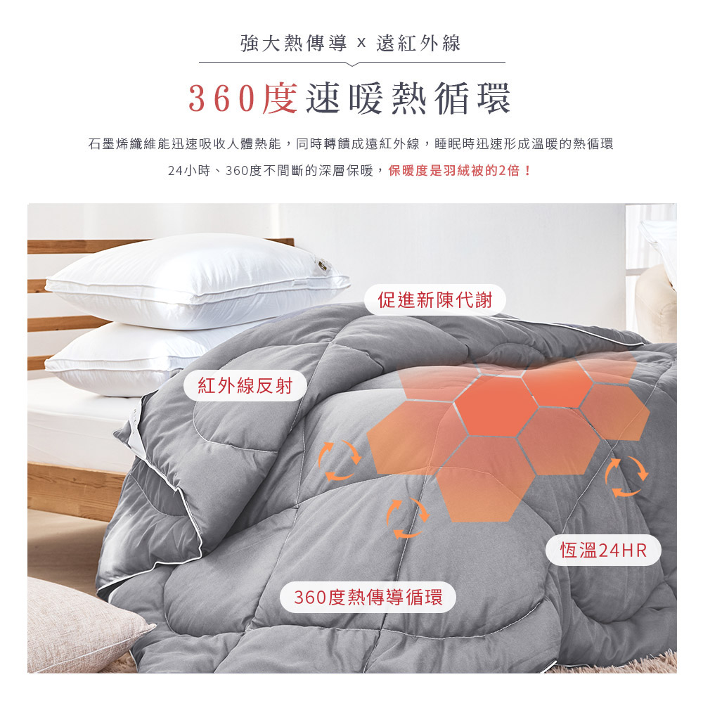 諾貝爾物理獎肯定,5分鐘瞬熱,恆溫24小時,360度遠紅外線,促進血液循環,提高睡眠品質,深層睡眠,預防靜電,防塵抗霉