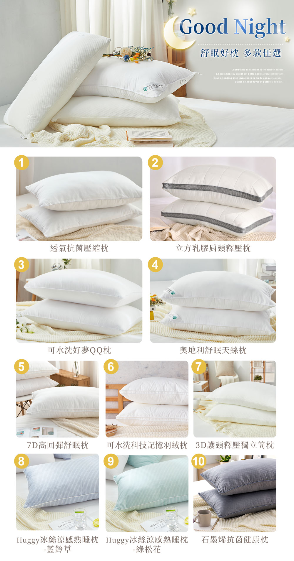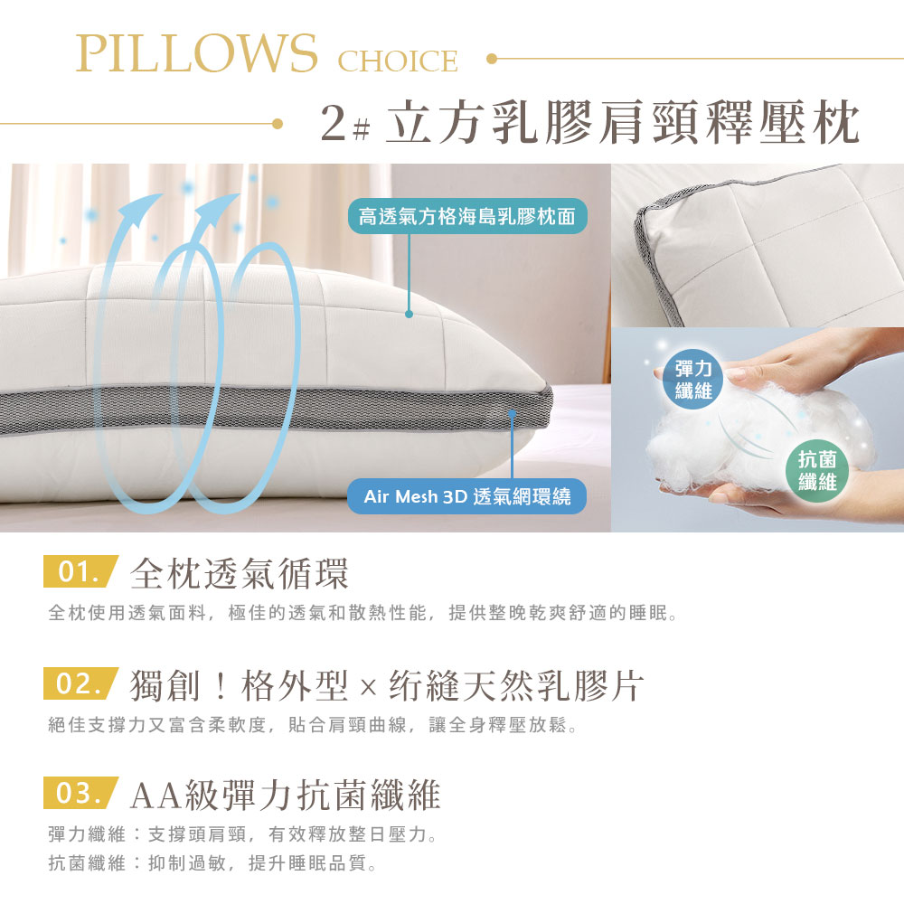 ● 多款枕頭任選,輕鬆選擇安心入睡