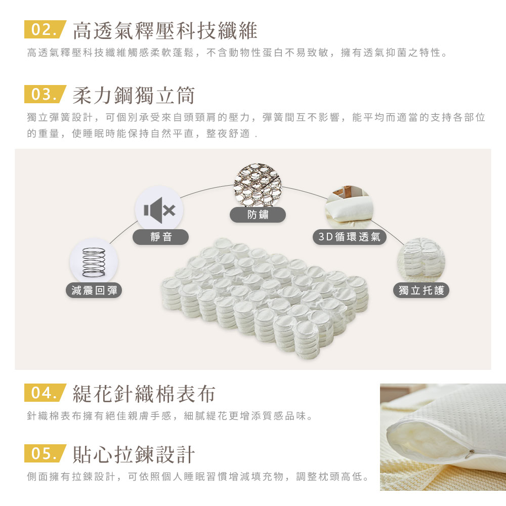 3D護頸釋壓獨立筒枕:不可水洗/建議乾洗/不可烘乾/不可漂白/不可熨燙/不可扭摔